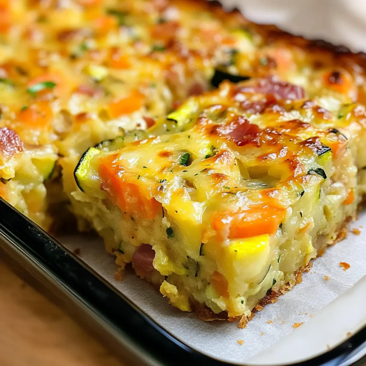 Nehmen Sie den aromatischen Zucchini-Auflauf aus dem Ofen und lassen Sie ihn in der Form abkühlen. Nach wenigen Minuten können Sie ihn vorsichtig in 12 gleich große Portionen schneiden. So sind die Stücke perfekt für das Servieren, egal ob warm als Hauptgericht oder kühl als Snack.
