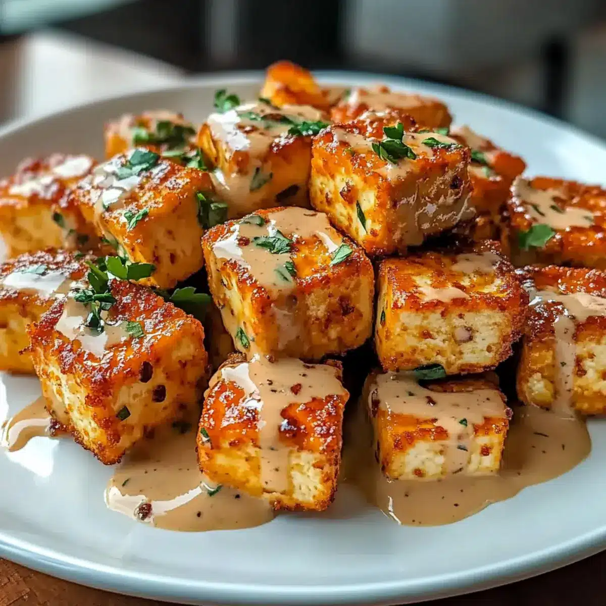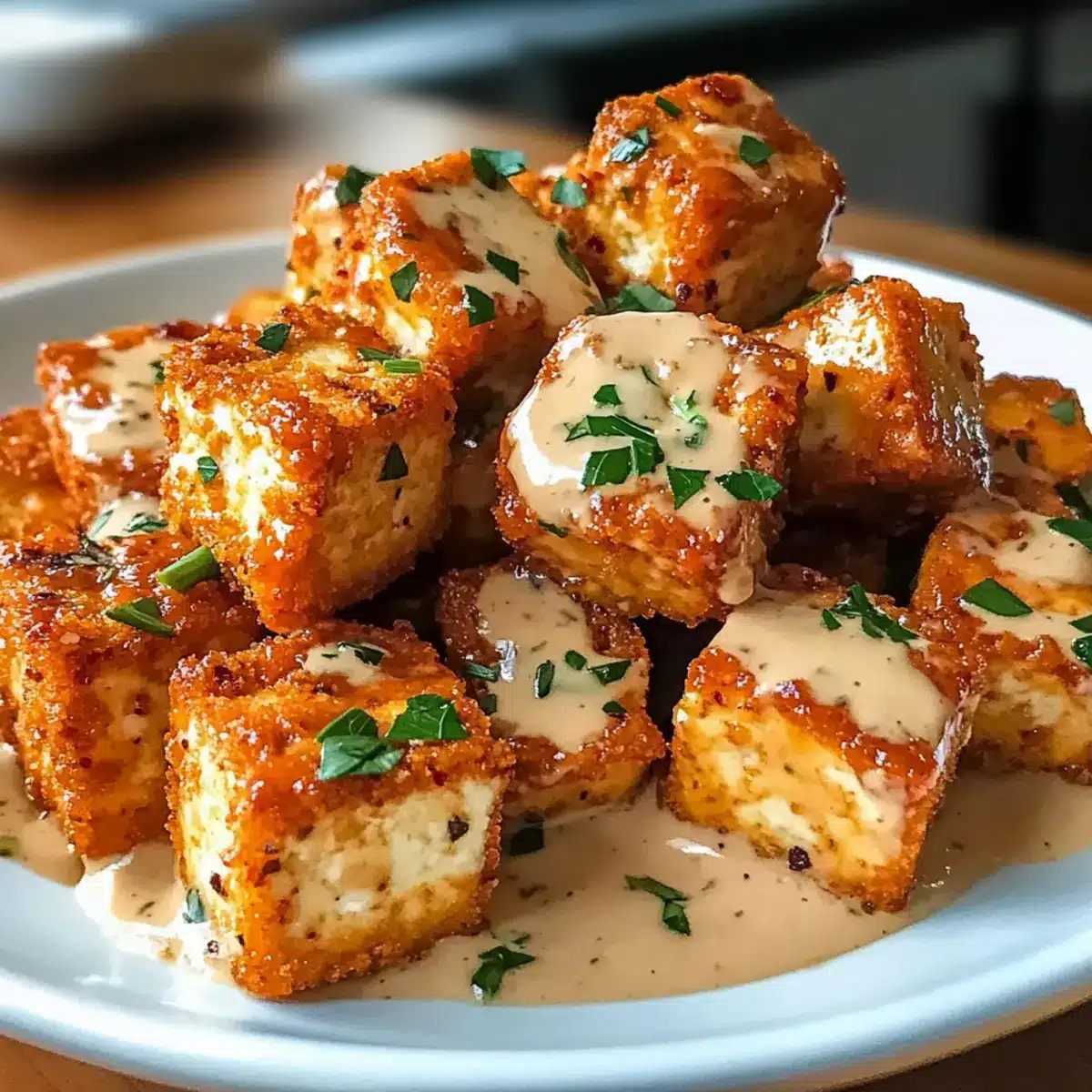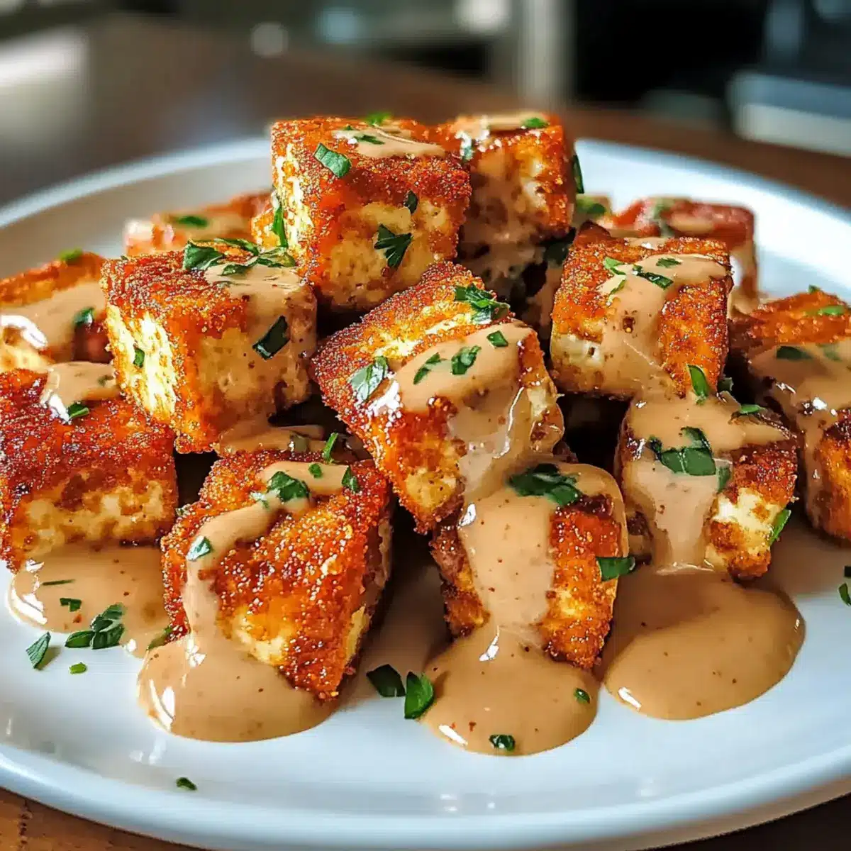 Zufriedenstellende Texturen: Der Kontrast zwischen dem knusprigen Äußeren und dem zarten Inneren des Tofus macht jeden Bissen zu einem Genuss!