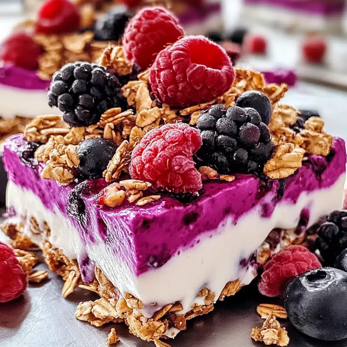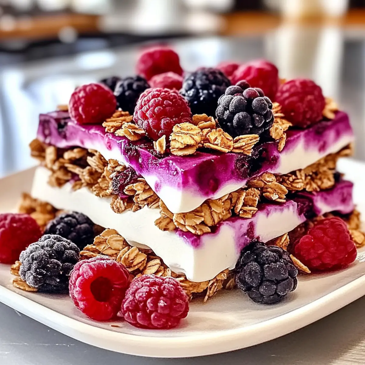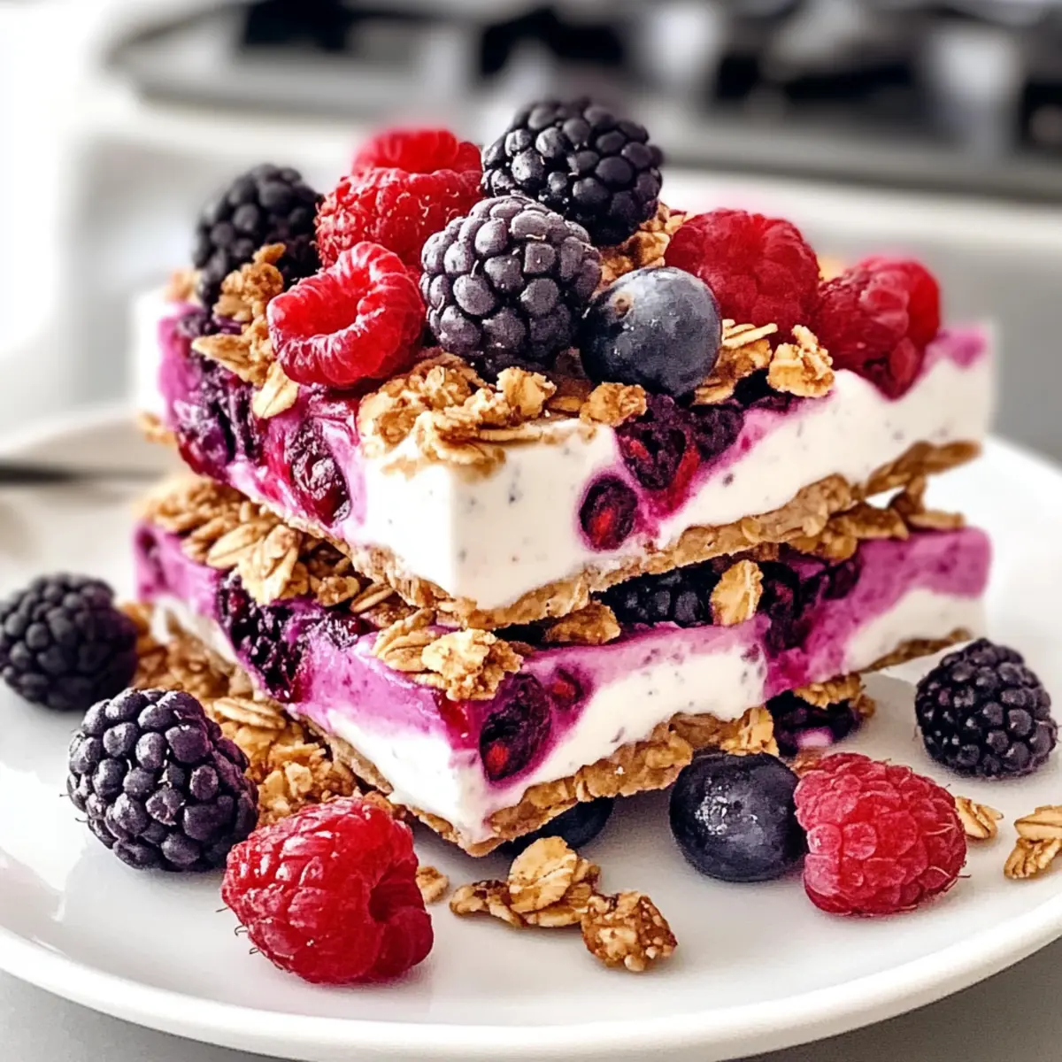 • Knusprige Toppings: Drücke die Granola- und Beerenstücke sanft in die Joghurtmasse, damit sie beim Gefrieren gut haften und der Crunch nicht verloren geht.