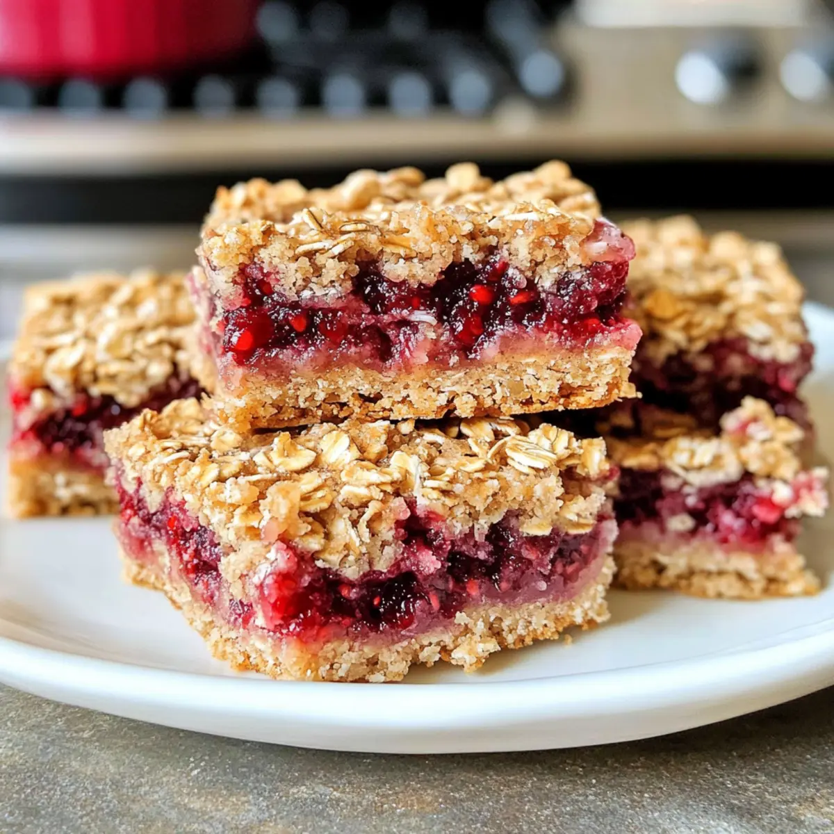 Gesundheit im Fokus: Diese Beeren Hafer Riegel sind Ihre perfekte Lösung für einen schnellen und nahrhaften Snack, der ohne raffinierten Zucker auskommt. Vielfalt der Aromen: Mit einfachen Variationen, wie Erdnussbutter oder verschiedenen Marmeladen, bleibt der Genuss immer neu und spannend. Einfachheit der Zubereitung: In nur 30 Minuten sind sie fertig – ideal für hektische Morgen. Perfekte Textur: Die Kombination aus zähem Hafer und fruchtiger Füllung sorgt für ein unvergessliches Geschmackserlebnis. Familienfreundlich: Jeder liebt sie – egal ob zum Frühstück oder als nachmittäglicher Snack! Entdecke auch unsere anderen gesunden Rezeptideen, wie die aufregenden Müsliriegel.