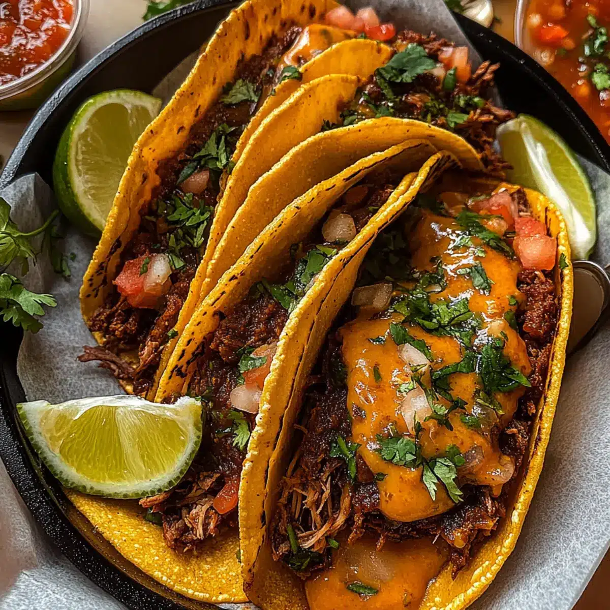 Du bist nur einen Schritt davon entfernt, deine Birria Tacos in ein komplettes Festmahl zu verwandeln, das alle Sinne anspricht.