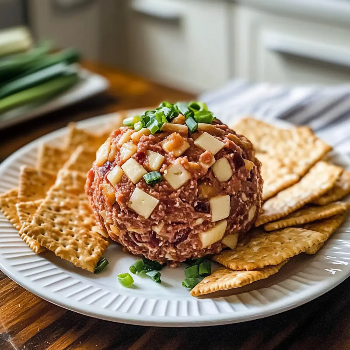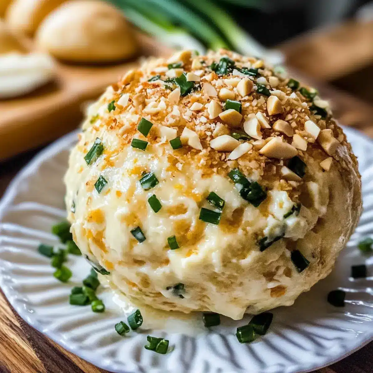 Köstlicher Cheddar- und Zwiebelkäseball für Feste