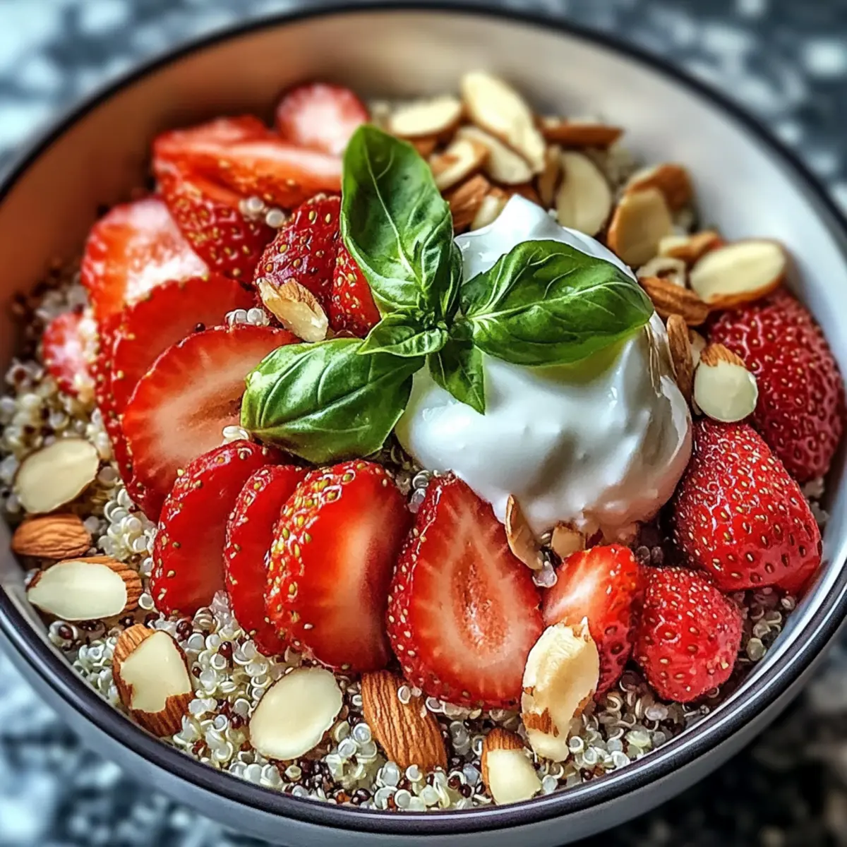 Erdbeere Basilikum Frühstück Quinoa für den perfekten Start