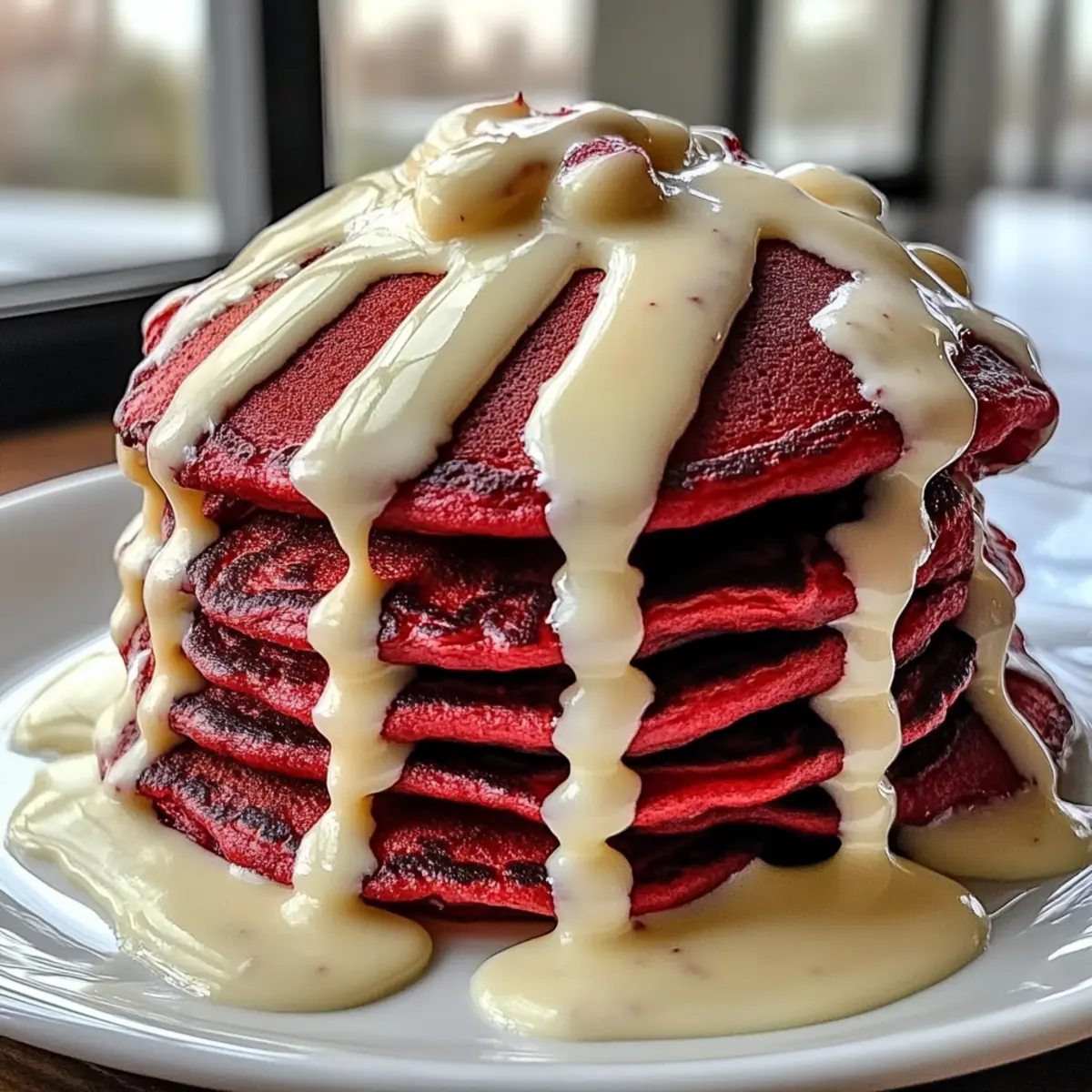 Rote Samt-Pfannkuchen mit Frischkäse-Glasur genießen