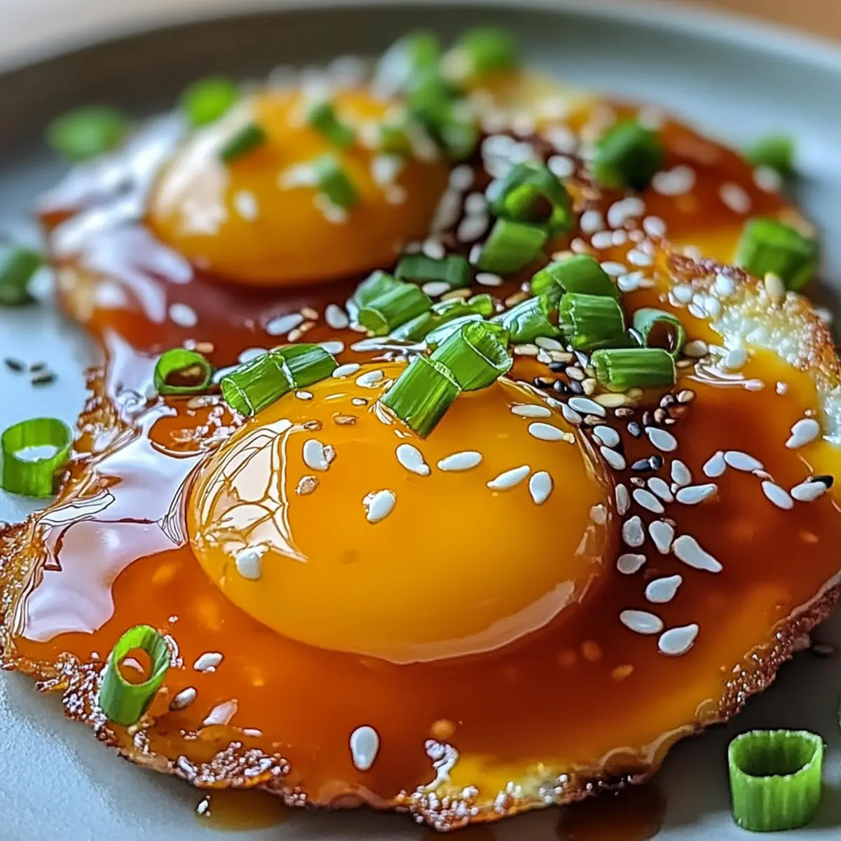 Scharfe süß-sauren gebratene Eier für ein schnelles Frühstück