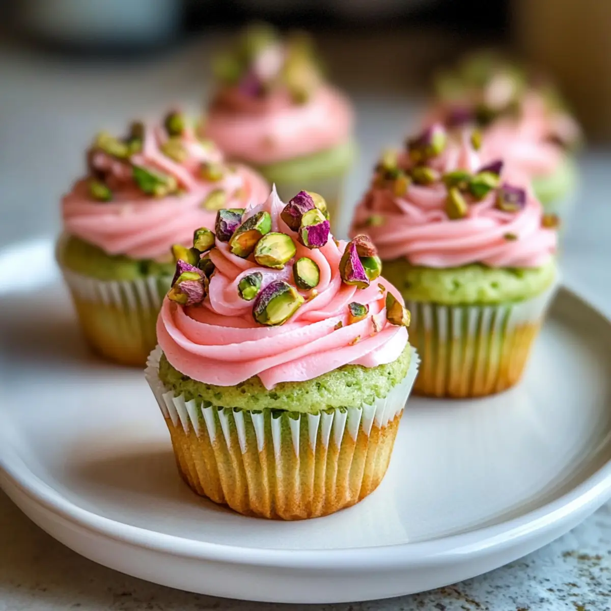Vegane Mini-Rosen-Pistazien-Cupcakes für Feste
