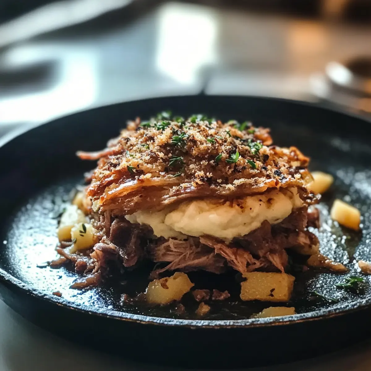 Mini-Ente-Confit-Parmentier mit Kartoffel-Chantilly