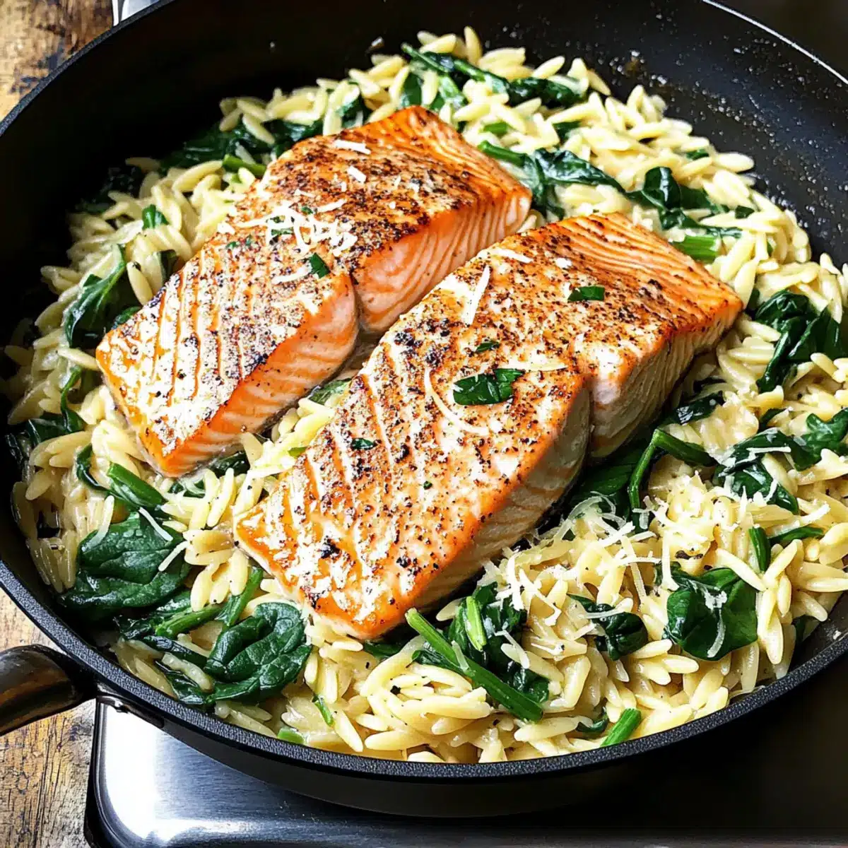 Lachs mit Zitronen-Orzo in einer Pfanne zaubern