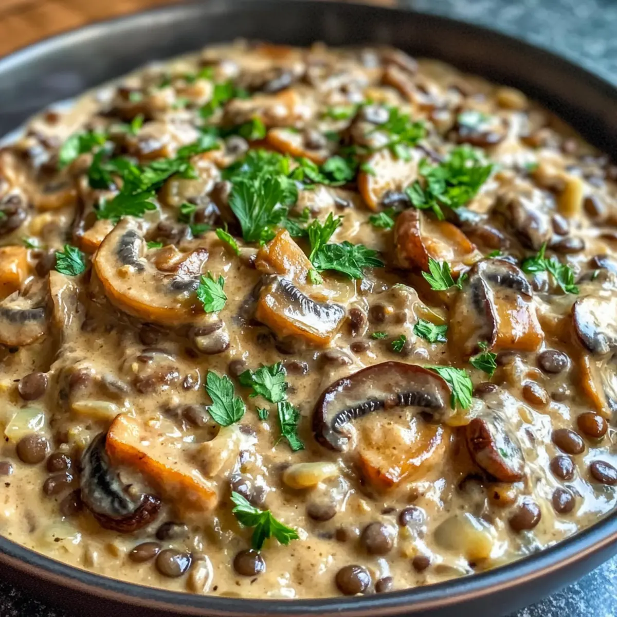 Cremige vegane Linsen-Pilz-Stroganoff für jeden Tag