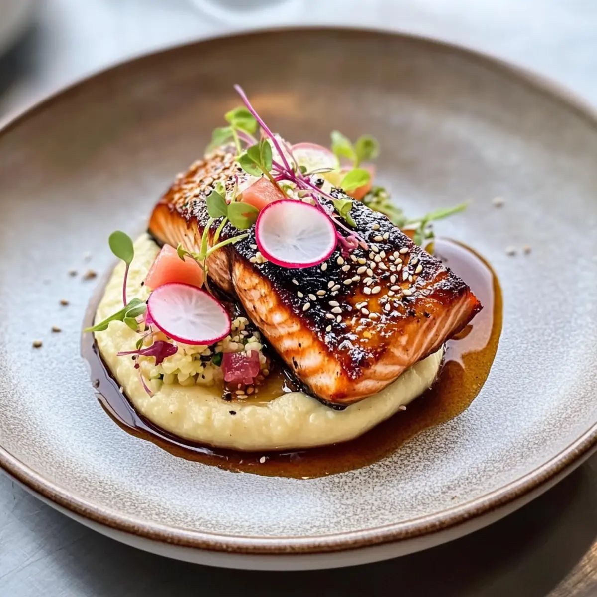Sake-Glasierter Lachs mit Sesamsamen für Gourmets