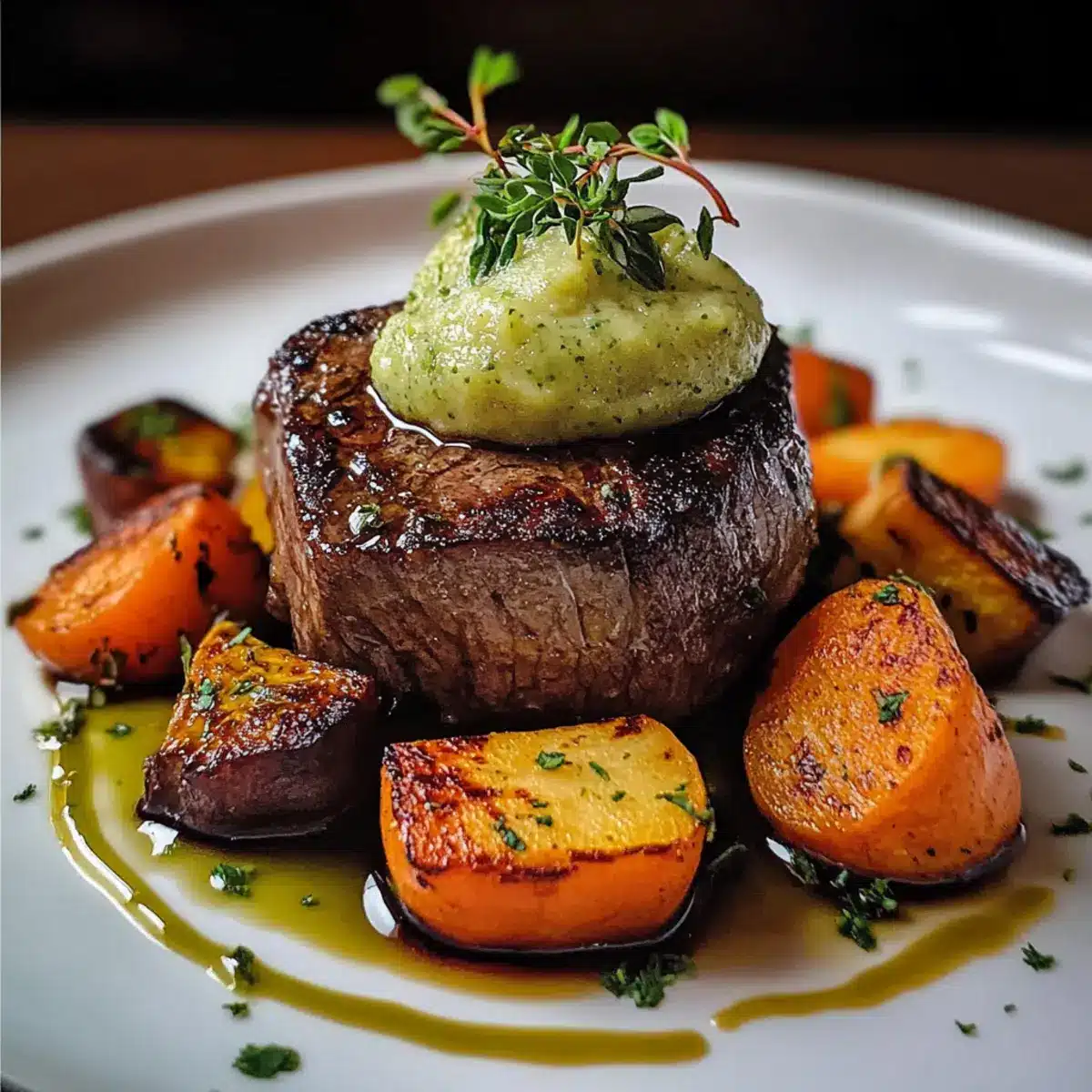 Perfektes Filetsteak mit Selleriepüree und Gemüse