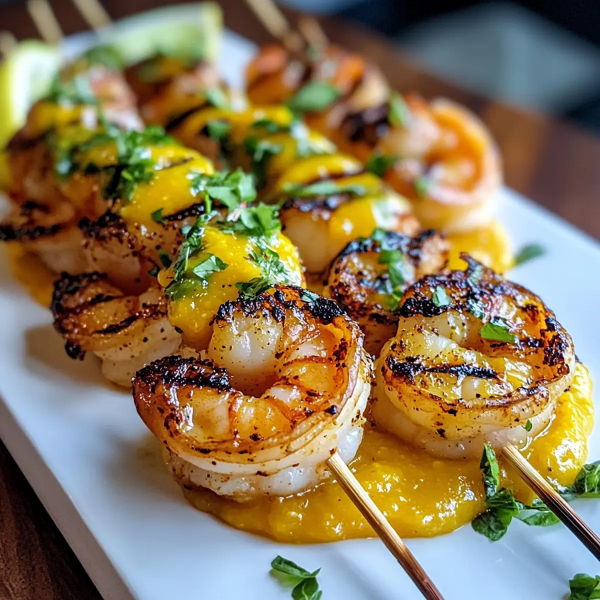 Gegrillte Garnelen mit scharfer Mango-Limetten-Coulis