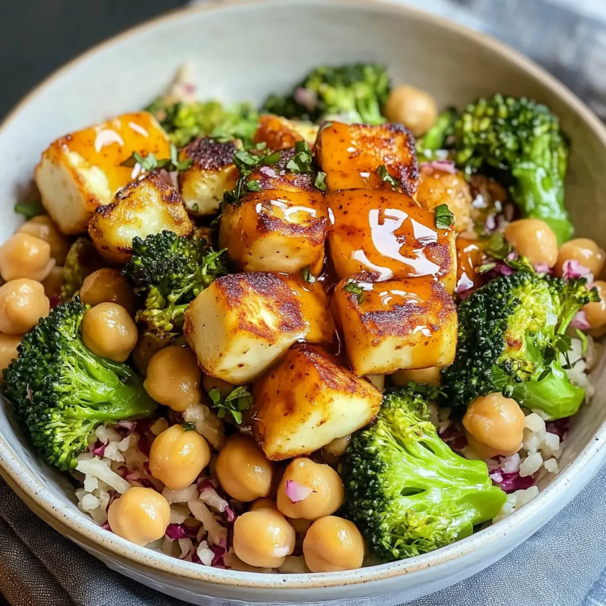 Halloumi- und Kichererbsenschalen mit Honig-Drizzle