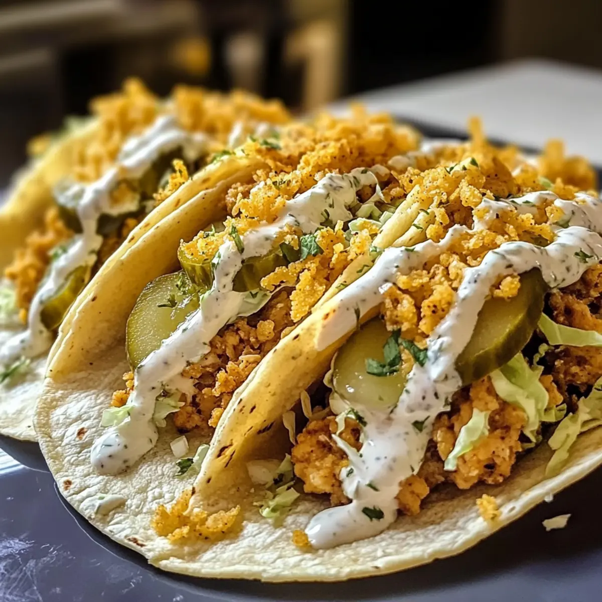 Zerschmetterte Hühnertacos mit Dill-Pickles