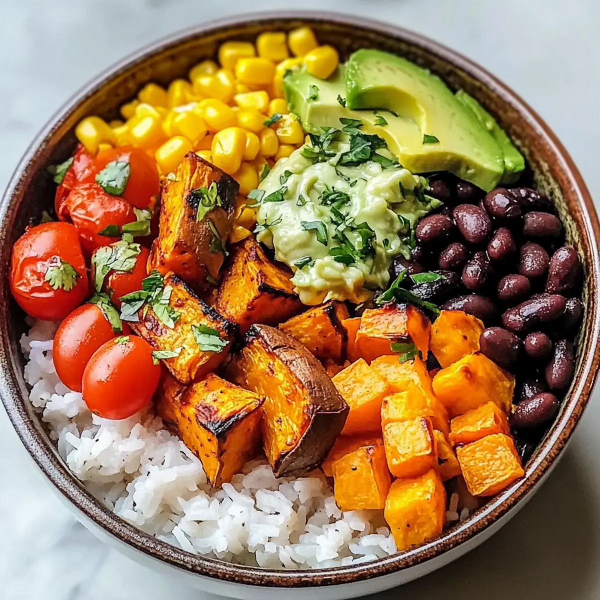 Vegane Süßkartoffel-Burrito-Schüssel für alle