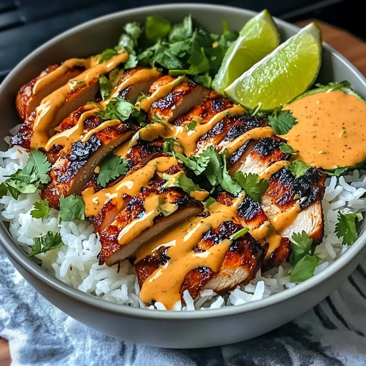 Süßes Chili-Hühnchen-Bowl mit Kokos-Limetten-Soße