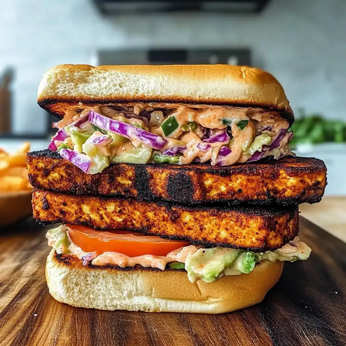 Crispy Blackened Tofu Sandwich mit Sriracha Coleslaw