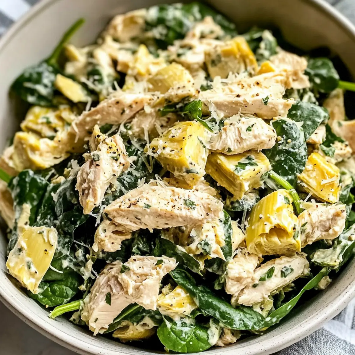 Spinat-Artischocken-Hühnchensalat für fröhliche Zusammenkünfte