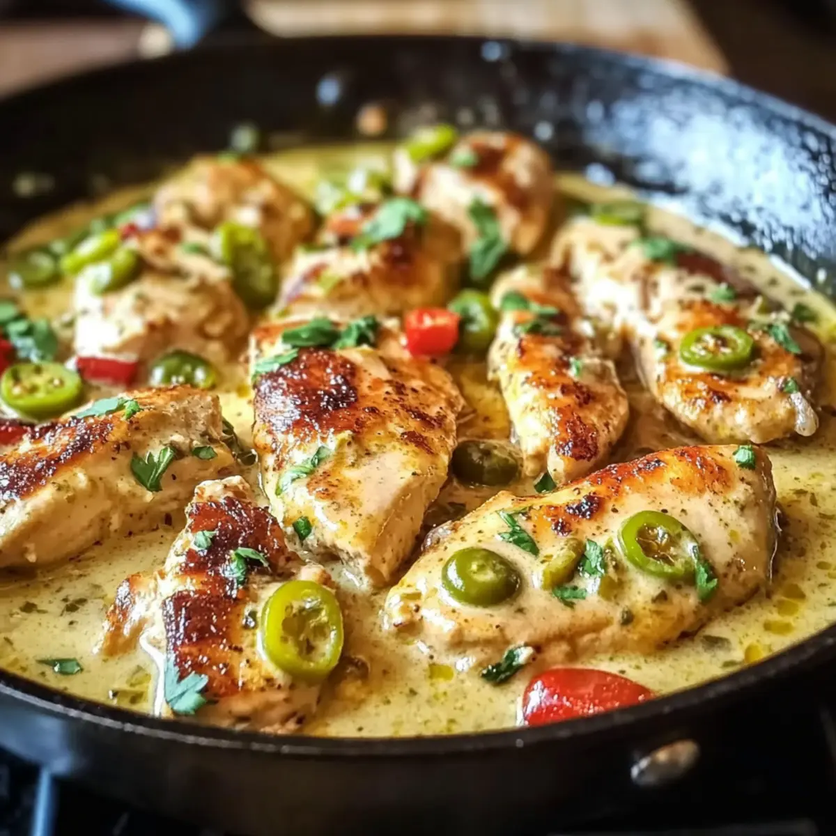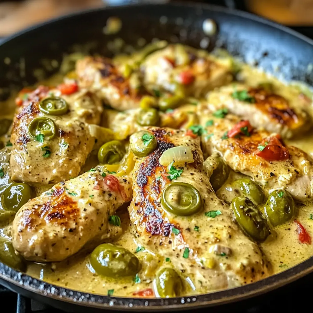 Begeisterung garantiert: Ob für dich allein oder einen vollen Tisch – diese Cremige Peperoncini-Hühnchen-Pfanne ist ein absoluter Gewinner, der deine Gäste beeindrucken wird!