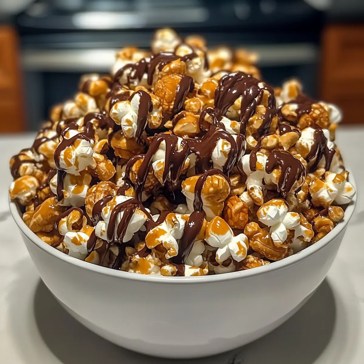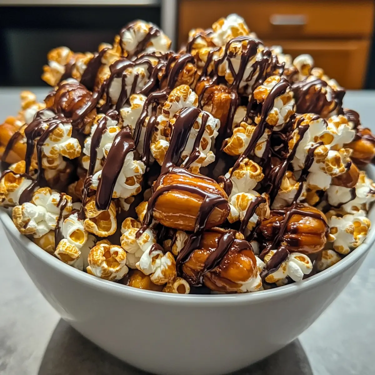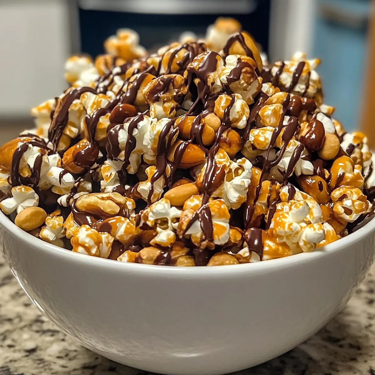 Nussfreie Version: Lassen Sie die Nüsse einfach weg und verdoppeln Sie die Menge an Popcorn. Wer ein klassisches Popcorn-Erlebnis ohne Nüsse sucht, wird diese Variante lieben.