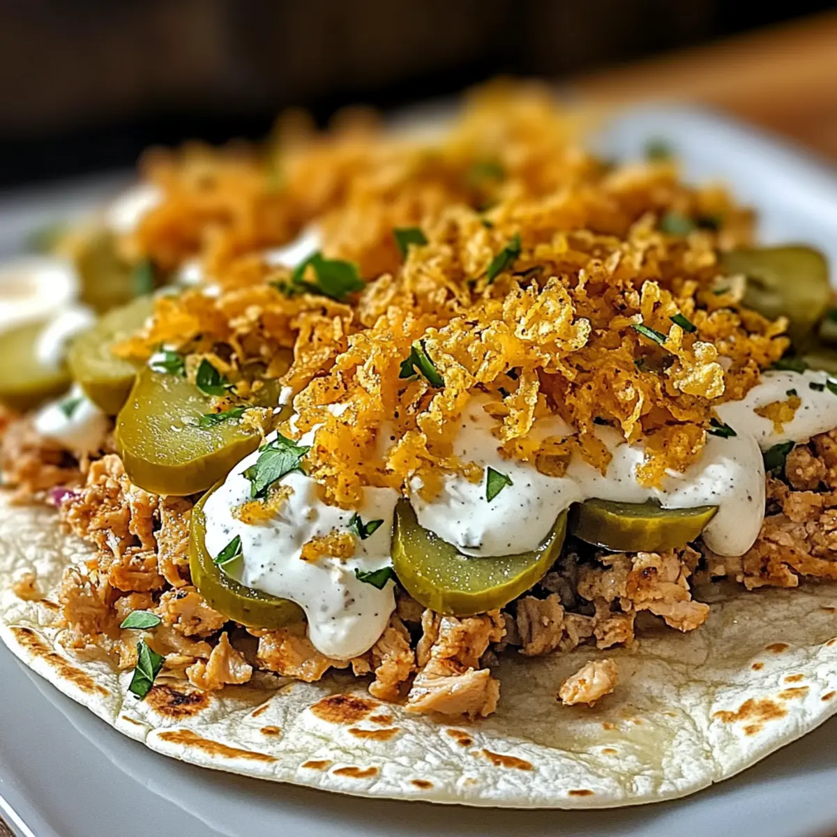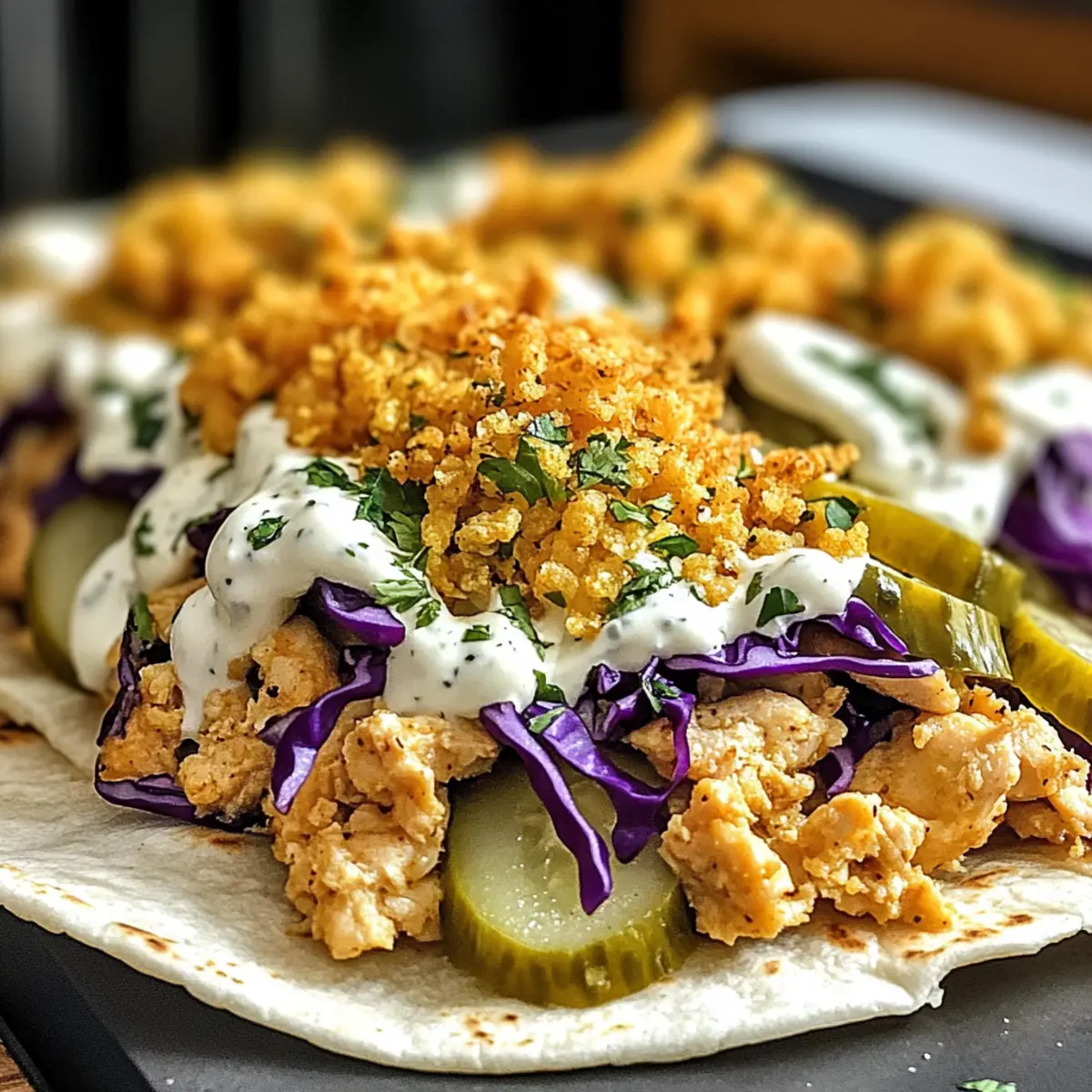 - Kreativität erlauben: Experimentieren Sie mit zusätzlichen Zutaten wie frischen Kräutern oder verschiedenen Käsesorten, um Ihre Dillgurken-Ranch-Smash-Hühnchen-Tacos individuell zu gestalten.