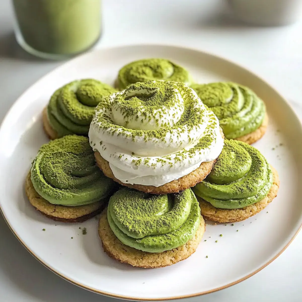 Einfache Matcha Latte Kekse mit Mascarpone-Topping