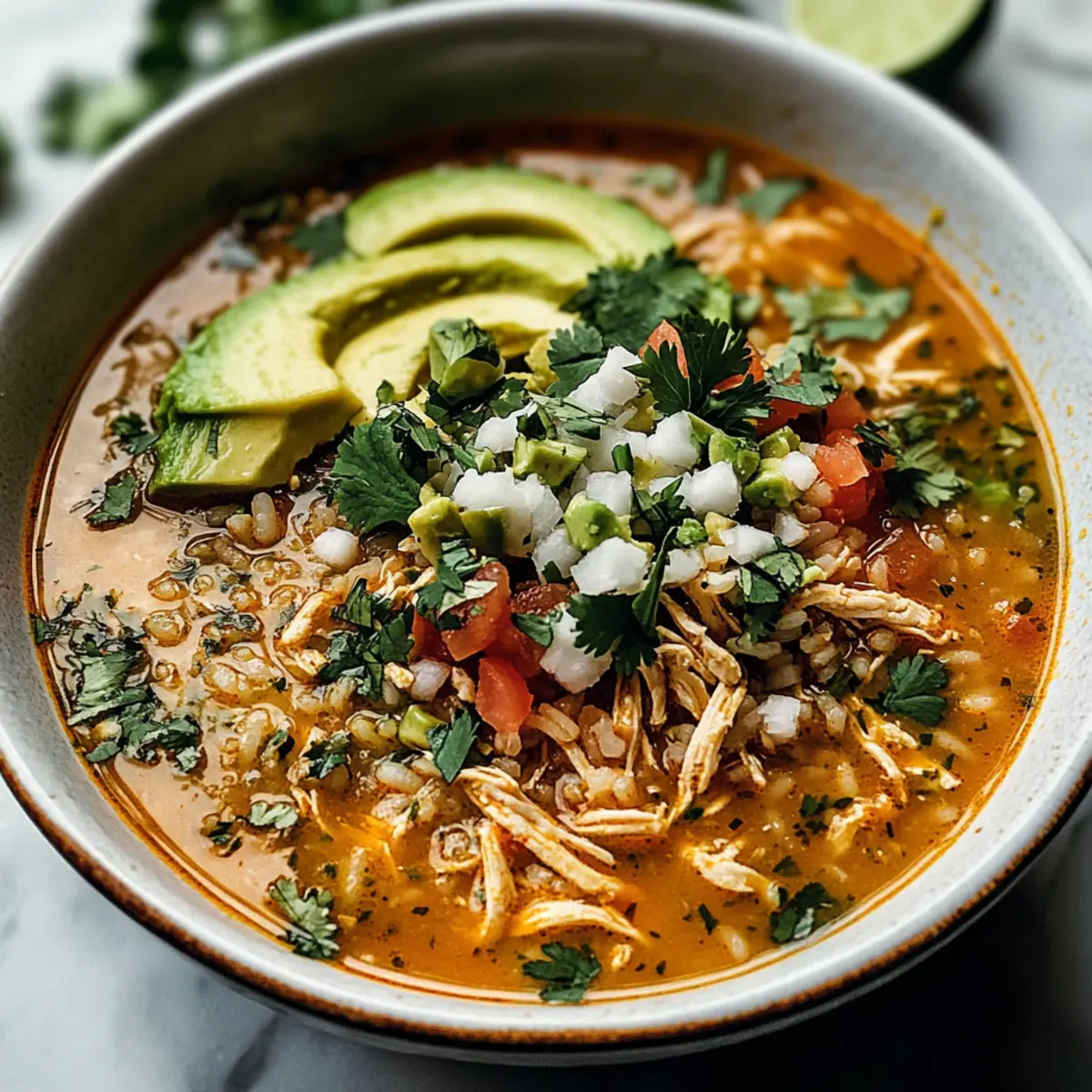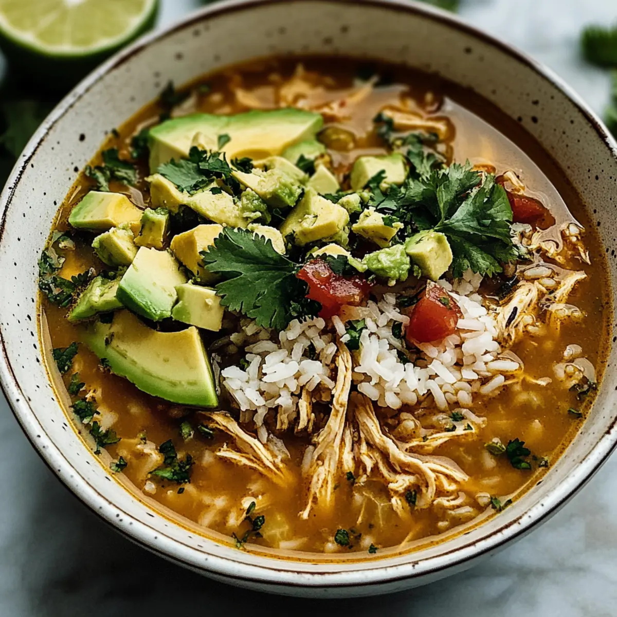 Ein spritziger Limonenschnappschuss: Der Duft von frischem Limettensaft und aromatischen Gewürzen zieht durch meine Küche, während ich an diesem kalten Nachmittag an meiner Easy Mexican Lime Chicken Rice Soup arbeite. Diese einfache mexikanische Limetten-Hühnchen-Reis-Suppe vereint die besten Elemente eines klassischen Hühnchensoups mit einem frischen, aufregenden Twist. Innerhalb von nur 30 Minuten zaubern Sie ein schnelles, wärmendes Gericht, das nicht nur Kinder begeistert, sondern auch Erwachsene um jeden Löffel kämpfen lässt. Perfekt für hektische Wochentage, ist diese Suppe fantastisch, wenn Sie Rotisserie-Hähnchen verwenden – es wird Zeit gespart und Pantry-Zutaten kommen zur Rettung! Bereit, einen besonderen Genuss für die ganze Familie zu kreieren? Lassen Sie uns zusammen in die Welt des Geschmacks eintauchen!