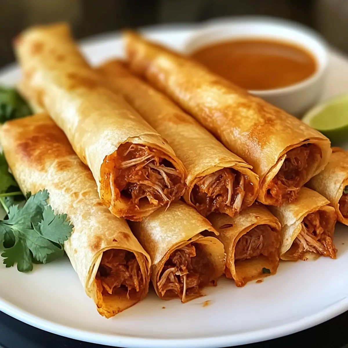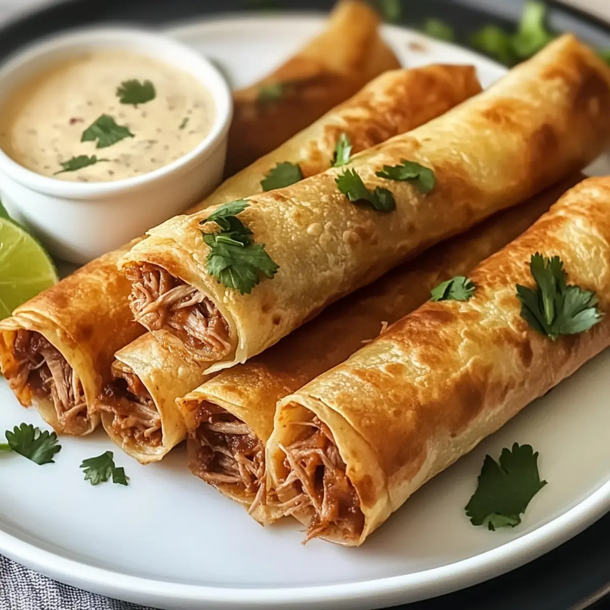 Knusprige Textur: Die goldbraunen, knusprigen Taquitos sorgen für einen köstlichen Crunch bei jedem Bissen, während die Füllung unwiderstehlich cremig bleibt.