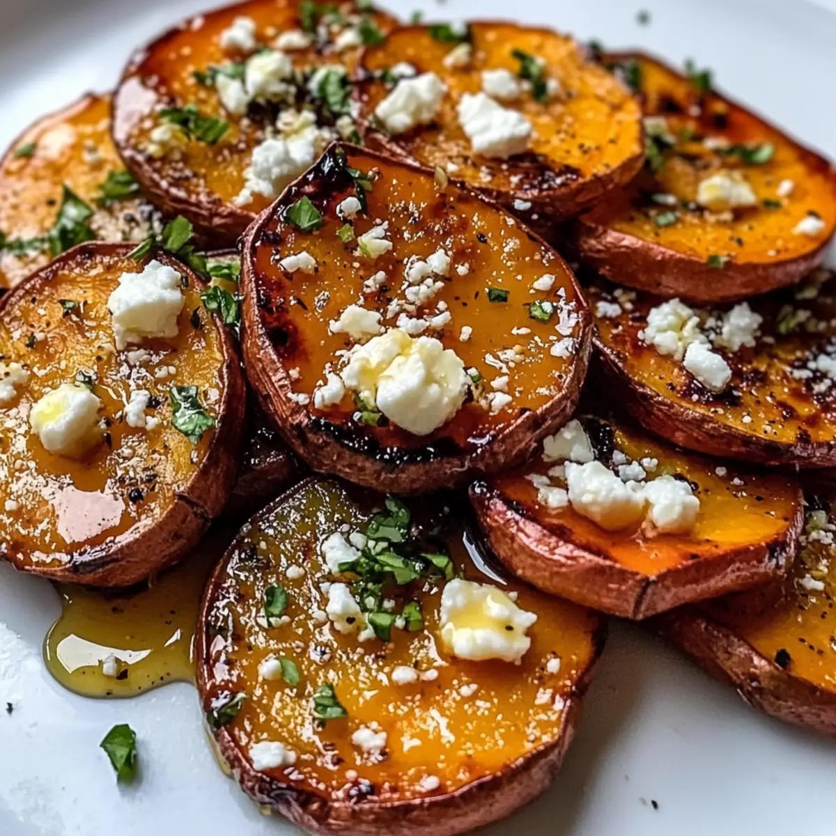 Süßkartoffelscheiben mit Honig und Feta genießen