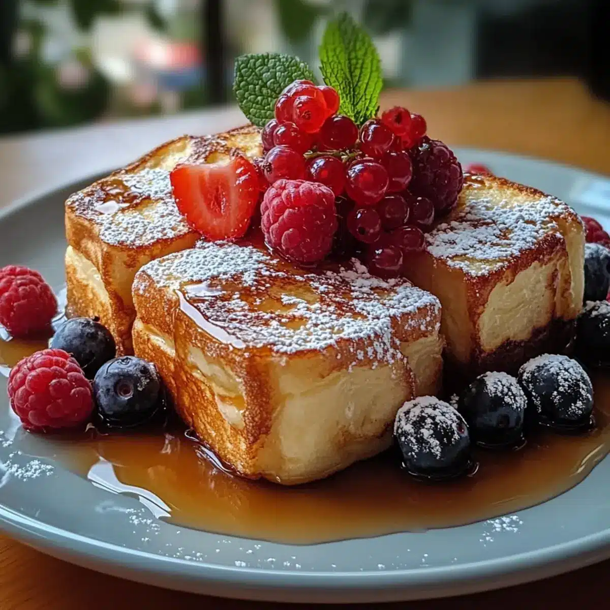 - Frische Beeren: Die süßen und saftigen Beeren bieten einen erfrischenden Kontrast zur süßen Cremigkeit des Toasts und bringen Farbe auf den Teller.