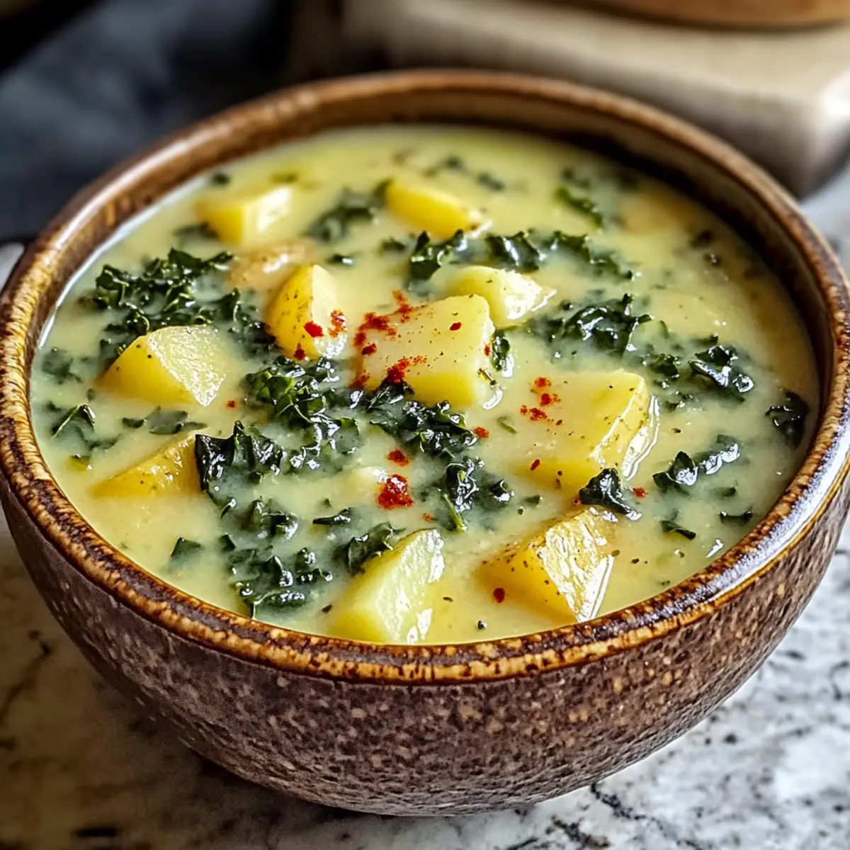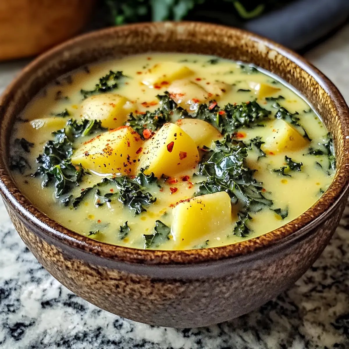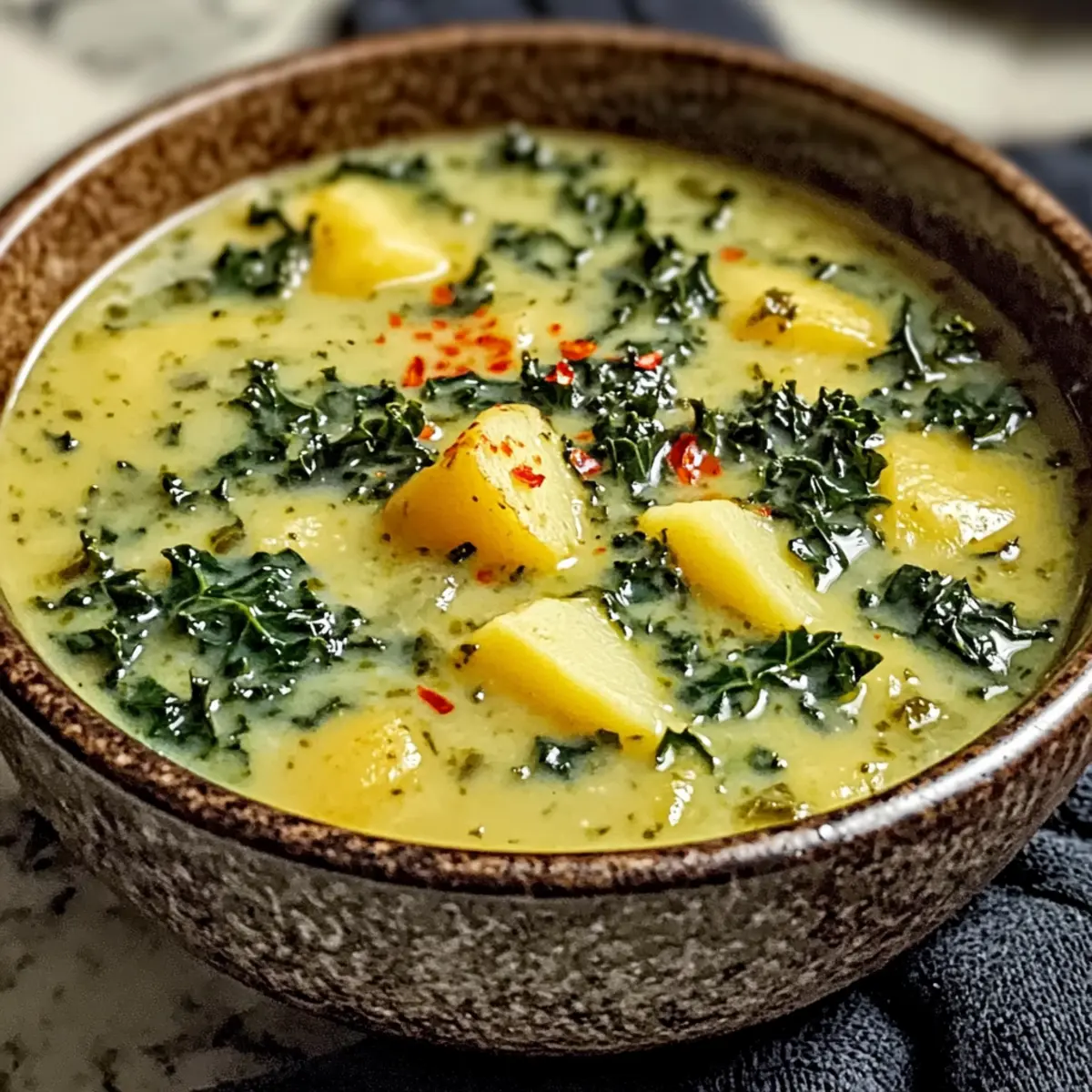Herzhafter Chunky Kartoffel-Grünkohl-Suppe für die Seele
