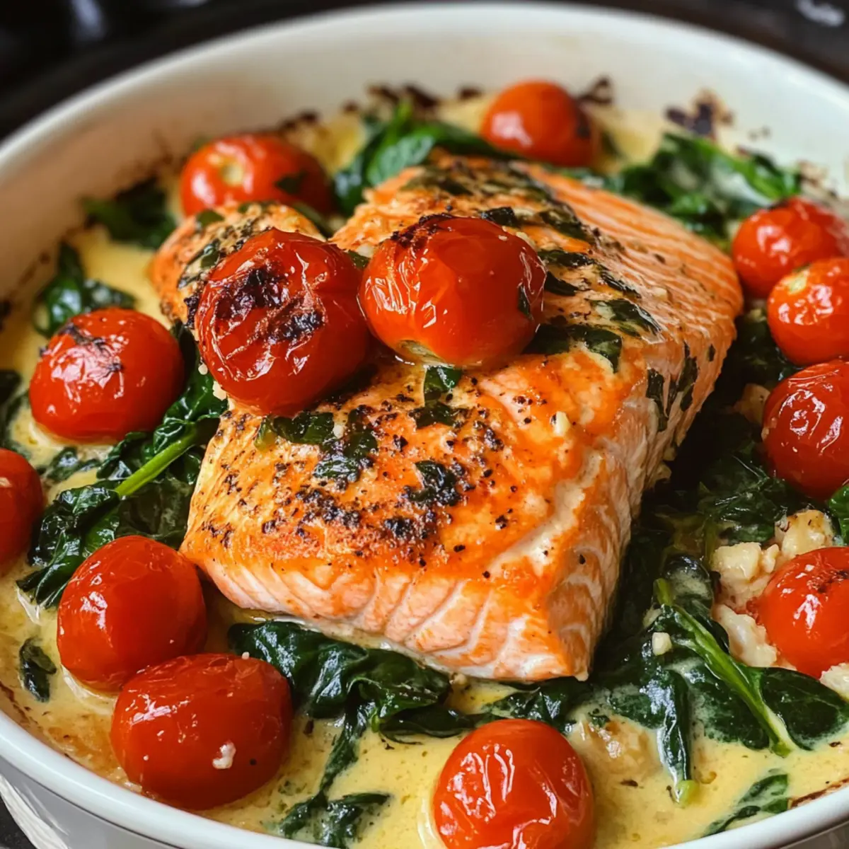 Satisfaction garantiert: Der zarte, saftige Lachs kombiniert mit cremigem Spinat und süßen Kirschtomaten sorgt für ein Geschmackserlebnis, das uns alle begeistert.