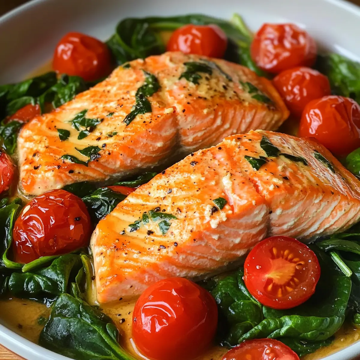Im Ofen gebackener Lachs mit Spinat für eilige Köche