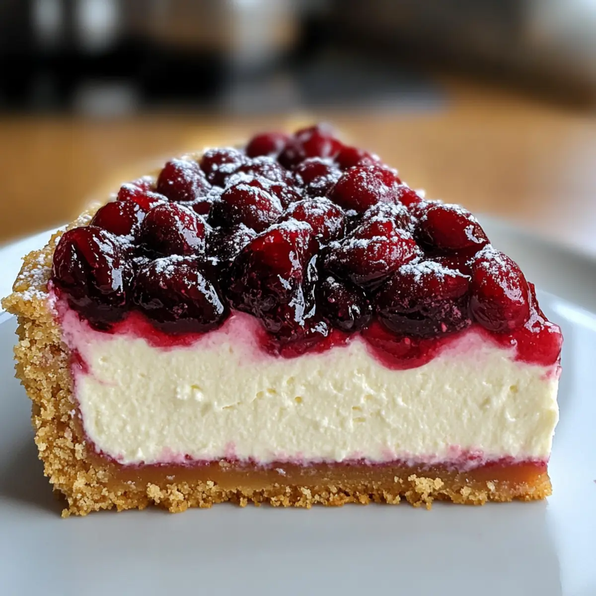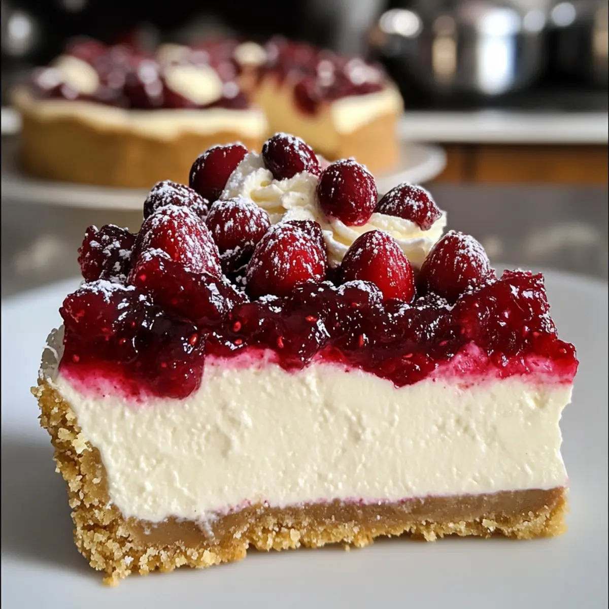 Käsekuchen mit Preiselbeermarmelade für die Feiertage
