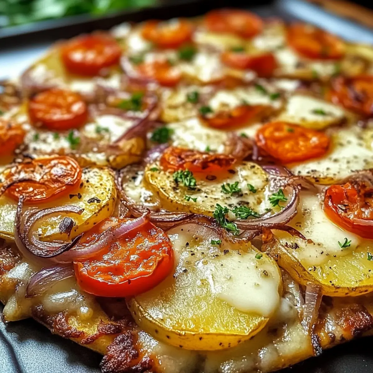 Wiedererhitzen: Erhitze die Reste bei 180 °C für 10-15 Minuten im Ofen, bis sie wieder schön knusprig sind. So bleibt der Genuss der Kartoffelpizza vom Blech erhalten!