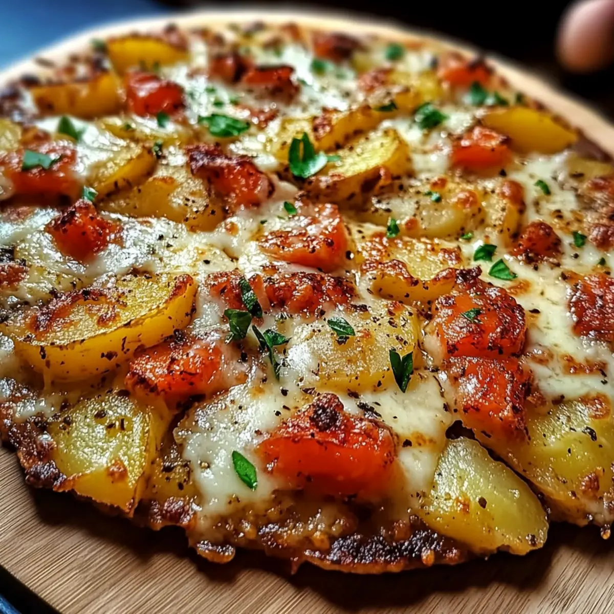Schnelligkeit: Du kannst diese Kartoffelpizza in kürzester Zeit zubereiten und sie ist somit ideal für hektische Abende.