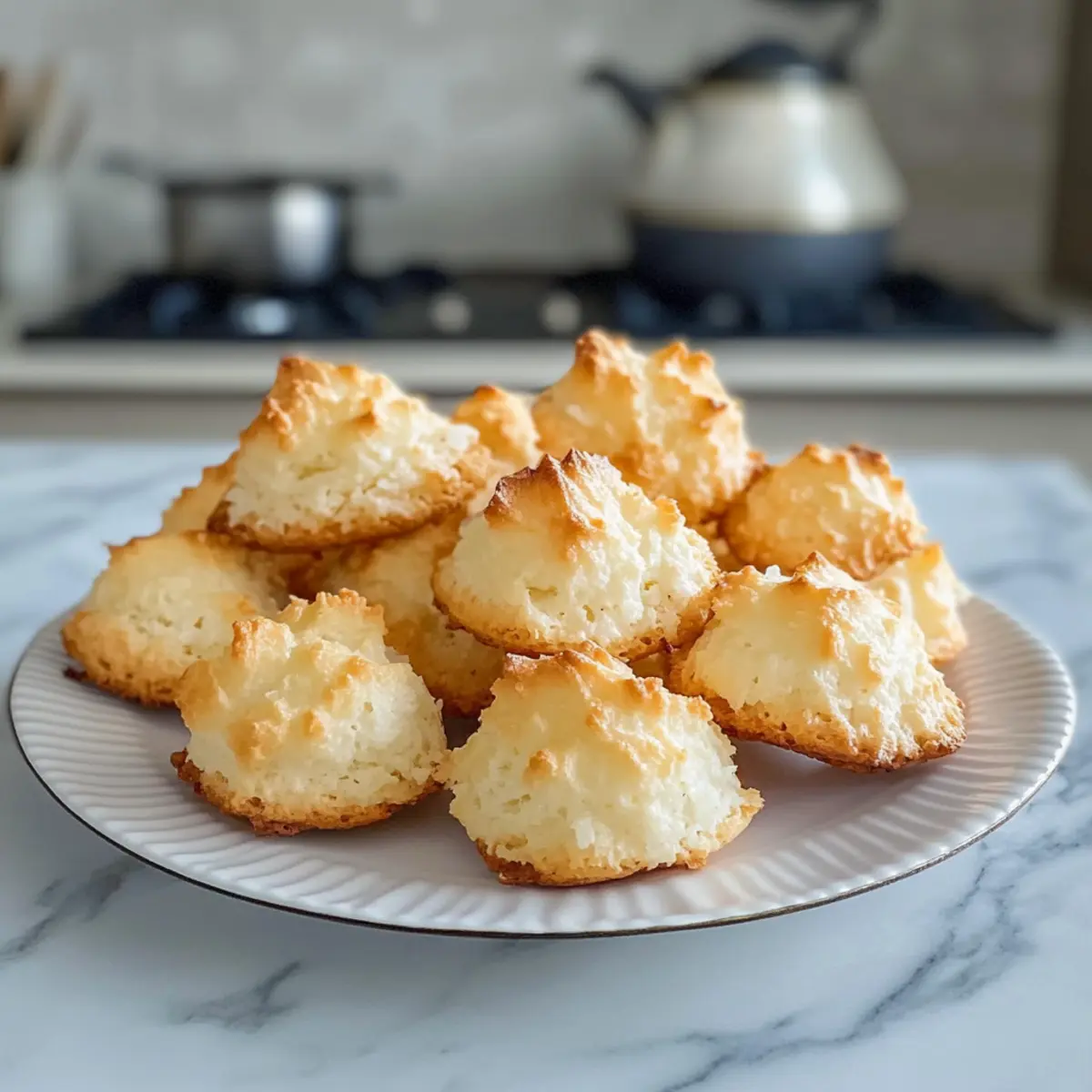 Room Temperature: Lagern Sie die Kokosmakronen in einer luftdichten Dose bei Zimmertemperatur, um ihre Knusprigkeit zu bewahren. So bleiben sie bis zu 2 Wochen frisch.