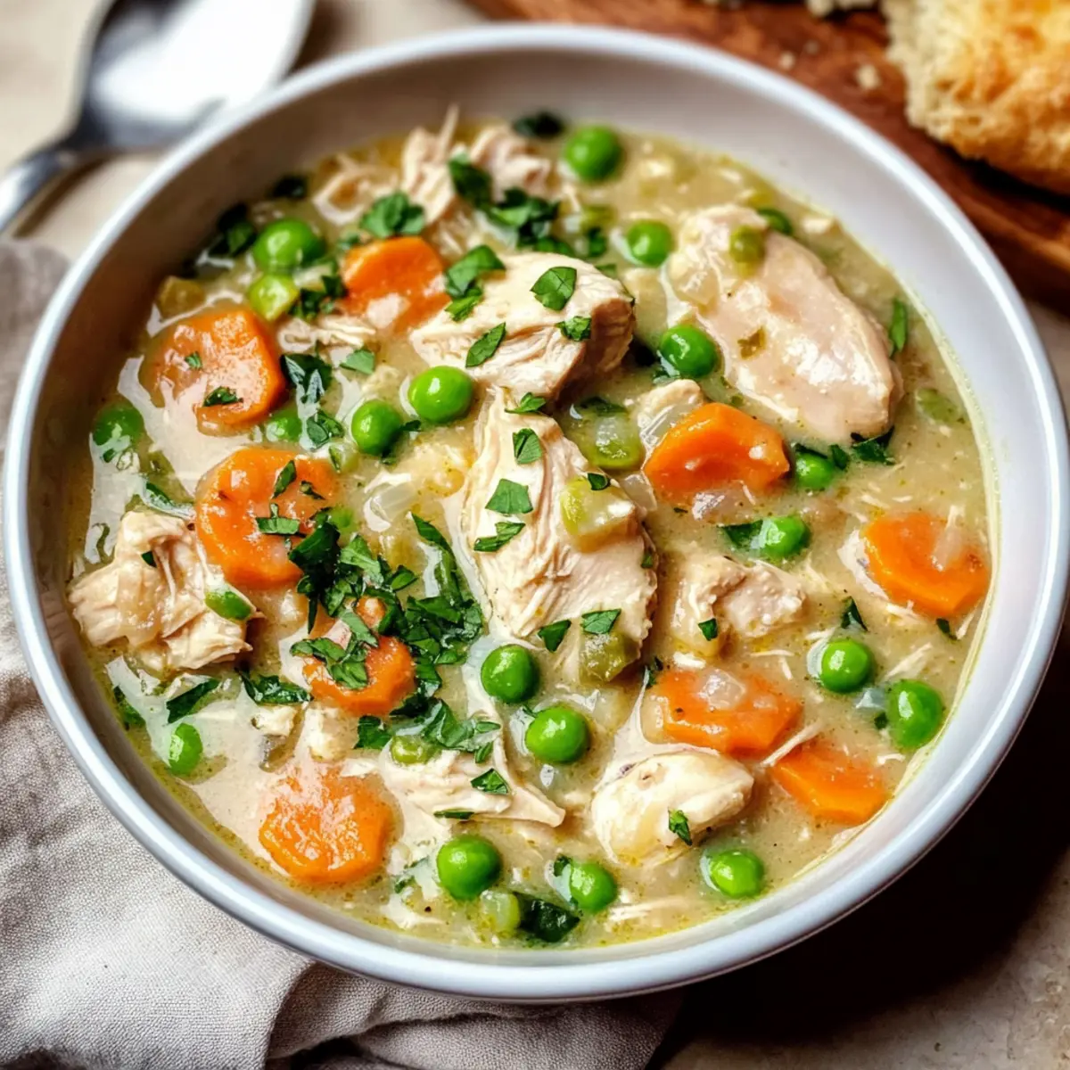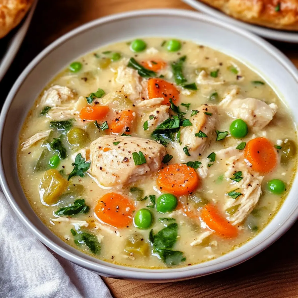An einem kühlen Abend, als der Wind durch die Bäume rauscht, genieße ich eine dampfende Schüssel meines Krustenlosen Hähnchen-Pastetchens. Diese köstliche Suppe ist nicht nur vollgepackt mit zartem Hühnchen und frischen Gemüse, sondern auch eine schnelle Lösung für ein herzhaftes Abendessen, das in unter 30 Minuten zubereitet ist. Die Tatsache, dass wir hier auf den traditionellen Teig verzichten, macht dieses Gericht nicht nur leichter, sondern auch glutenfrei und perfekt für alle, die es eilig haben, ohne auf Geschmack zu verzichten. Mit nur einem Topf bringt dieses Rezept Gemütlichkeit und gesunde Ernährung in Einklang. Neugierig, wie einfach du diese Seelenschmeichler-Suppe zubereiten kannst? Lass uns gemeinsam in die Zubereitung eintauchen!