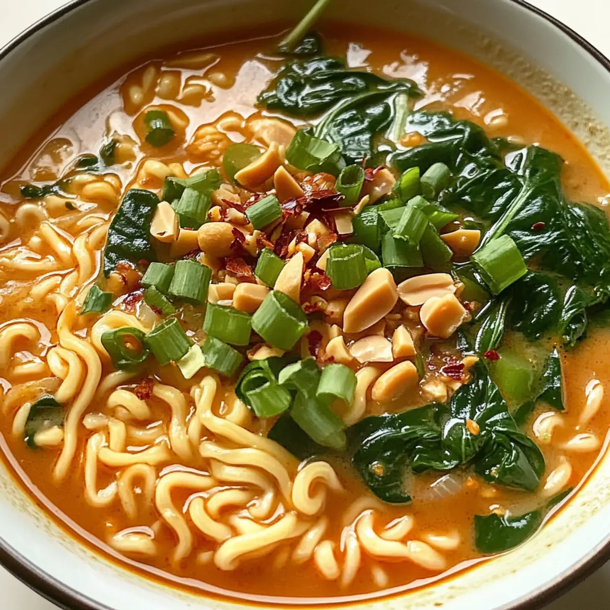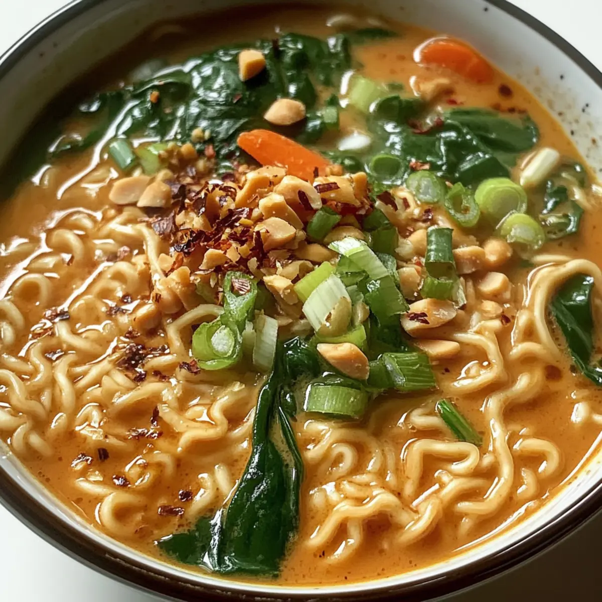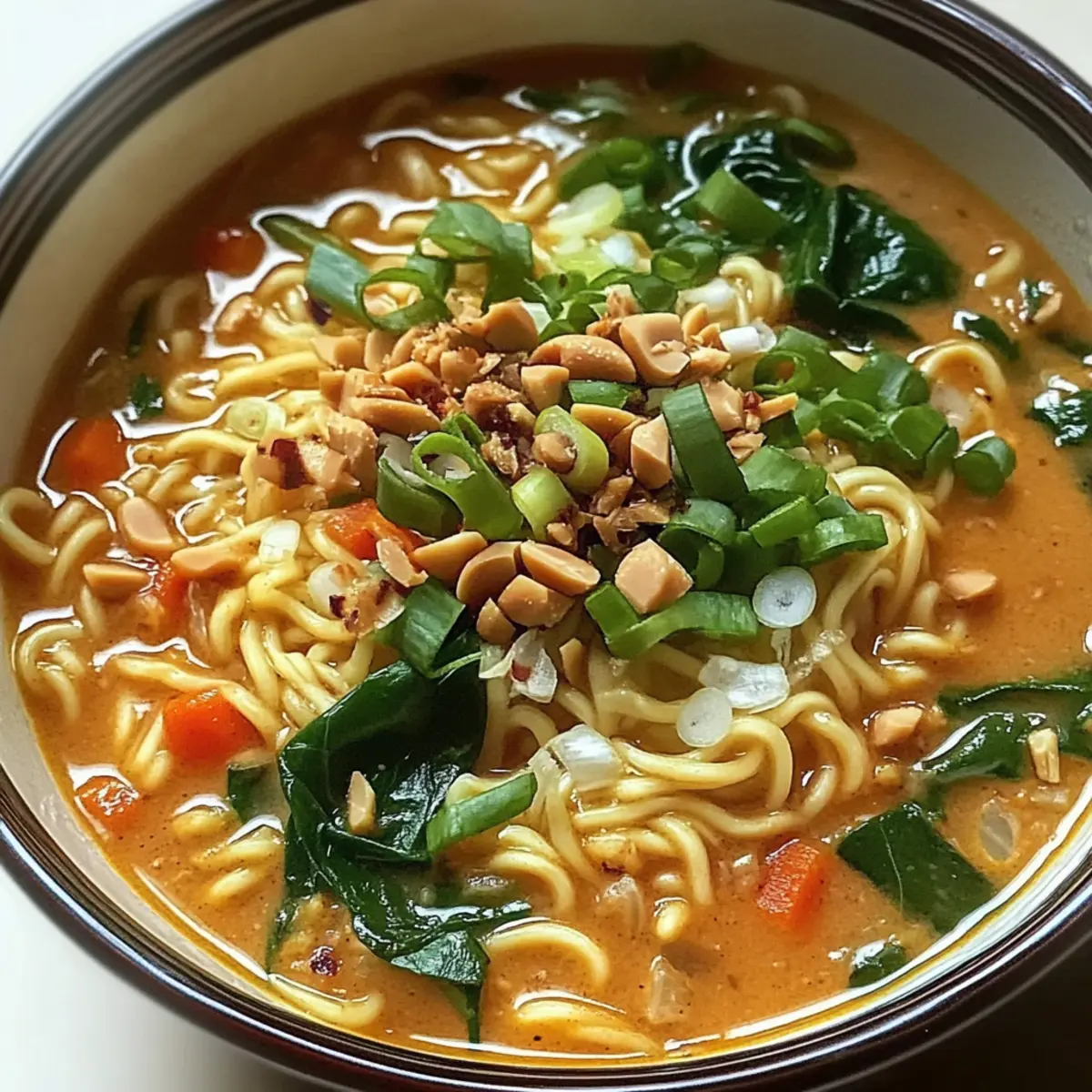 Einfachheit: Das Rezept erfordert nur grundlegende Kochkenntnisse und ist in nur 20 Minuten zubereitet. Aromenreich: Die Kombination aus nussiger Erdnussbutter und umami-reichem weißen Miso sorgt für ein Geschmackserlebnis, das dich in die asiatische Küche entführt. Vegan und gesund: Mit frischem Gemüse und einer pflanzlichen Basis ist diese Ramen-Option ein nährstoffreiches Essen. Vielfalt: Variiere die Zutaten nach Lust und Laune, indem du Tofu oder unterschiedliche Gemüsesorten hinzufügst. Perfekte Komfortnahrung: Ideal für kalte Abende, bietet dieser Ramen eine herzerwärmende Mahlzeit, die selbst deine schnelllebigen Essgewohnheiten erfreuen wird. Du kannst sogar etwas Gemüsebrühe hinzufügen, um den Geschmack zu intensivieren!
