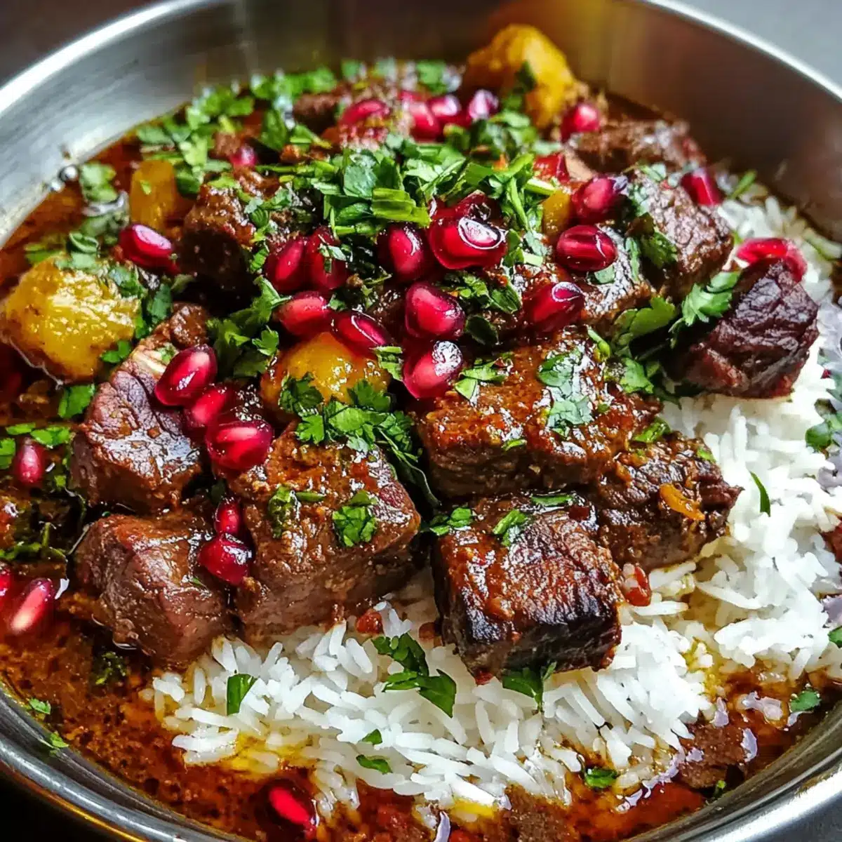 Wenn das Fleisch zart ist, rühre die frisch gehackte Petersilie und Minze unter. Diese frischen Kräuter verleihen dem Gericht eine angenehme Leichtigkeit und sorgen dafür, dass die Aromen des Persischen Shish Andaz perfekt zur Geltung kommen.
