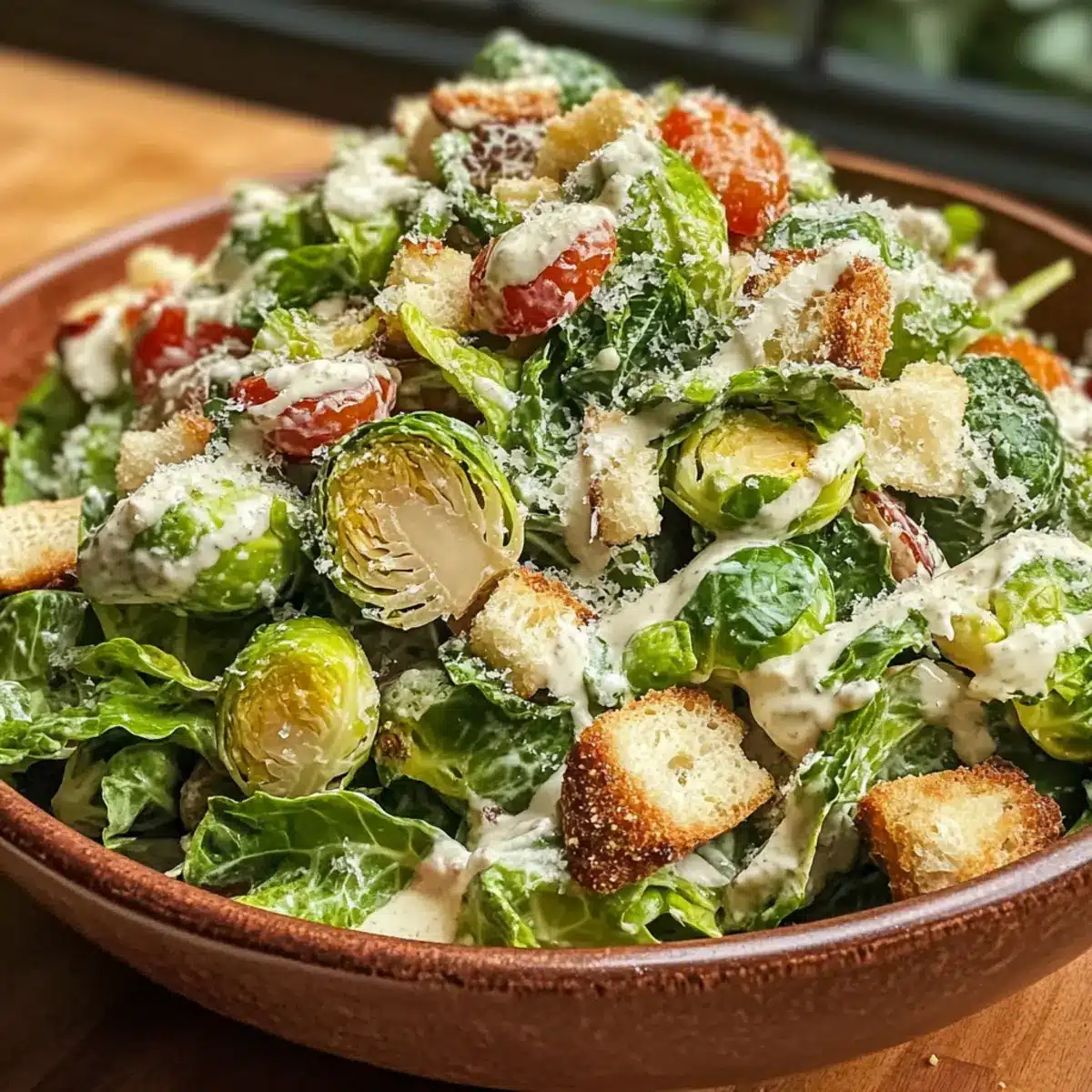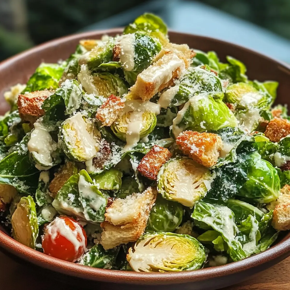 Frische Aromen: Der Rosenkohl Caesar Salat kombiniert die knackige Textur der Rosenkohlblätter mit dem cremigen Dressing zu einem unvergleichlichen Geschmackserlebnis.