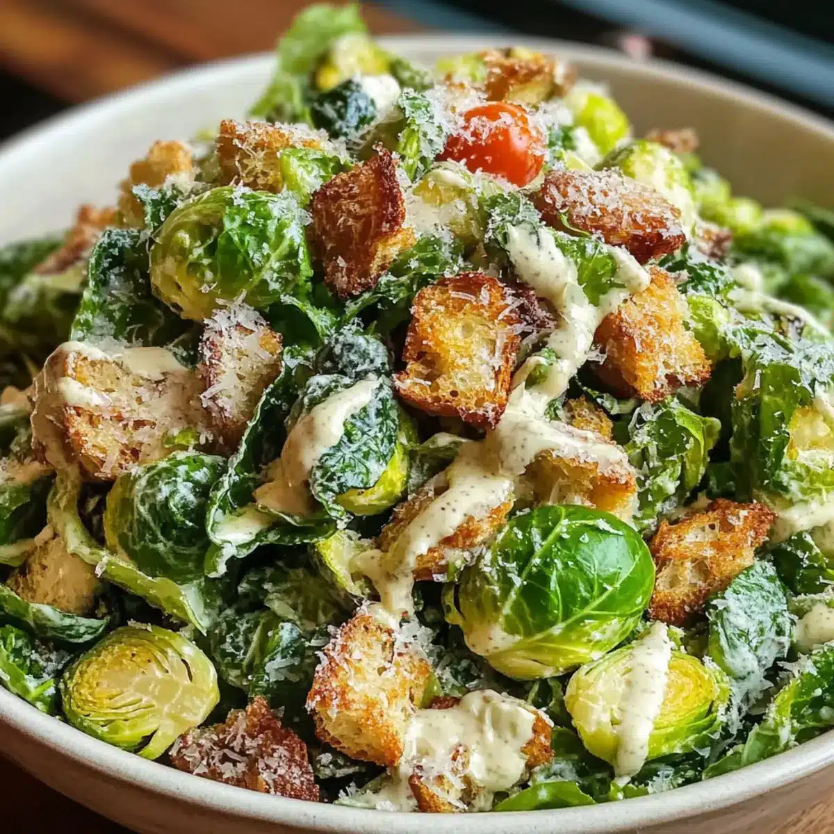 Dieser Rosenkohl Caesar Salat ist nicht nur köstlich, sondern auch eine gesunde und schnelle Option für alle, die frische Zutaten lieben!