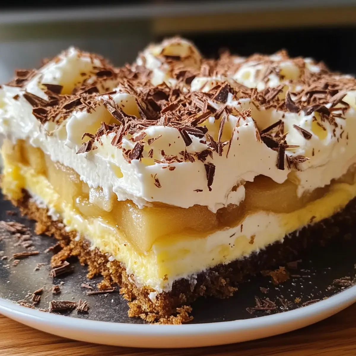 - Bestreue die Sahneschicht mit Schokoladenraspeln und lasse den Kuchen im Kühlschrank ruhen.