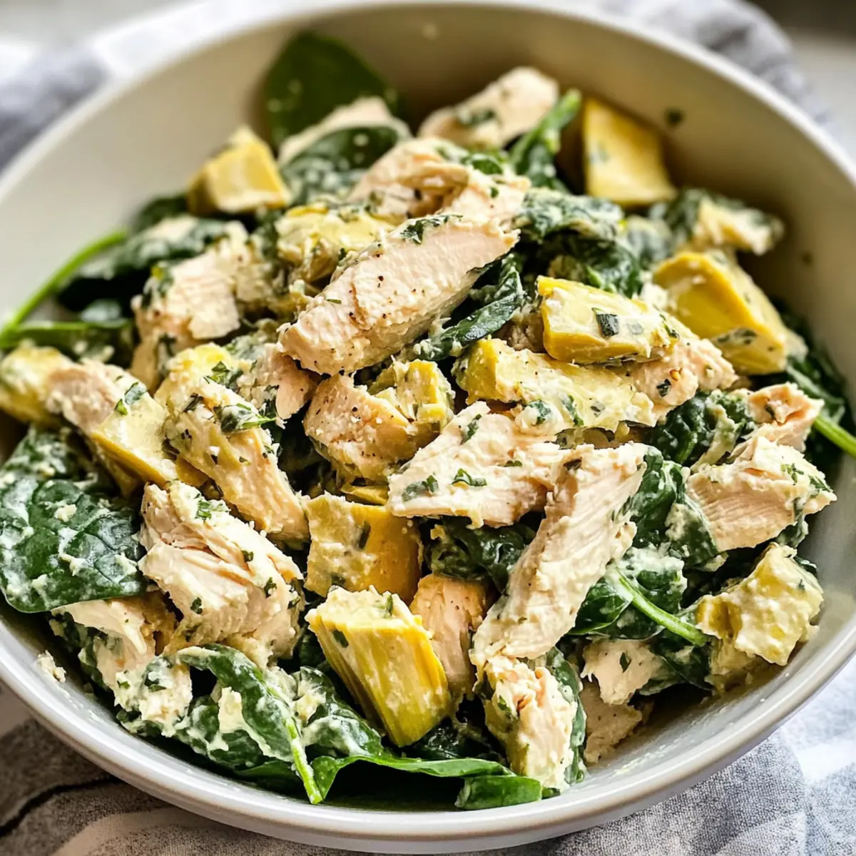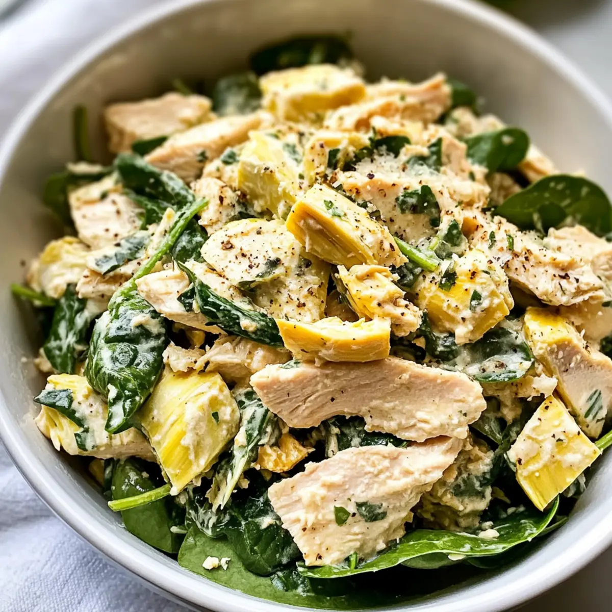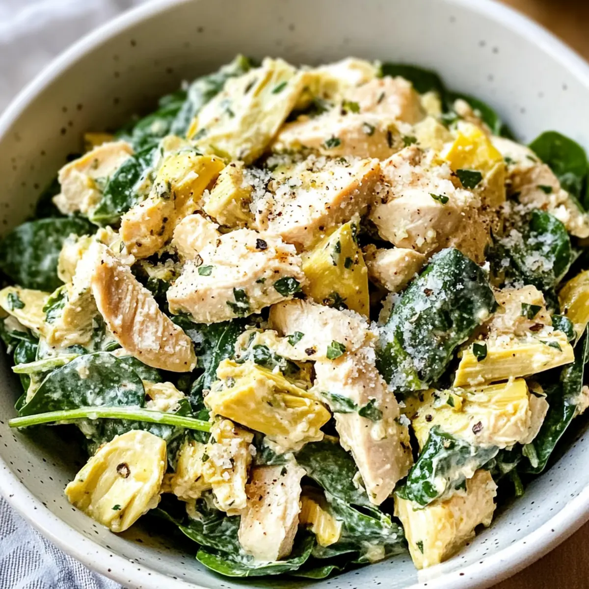 Variationen für Spinat-Artischocken-Hühnchensalat