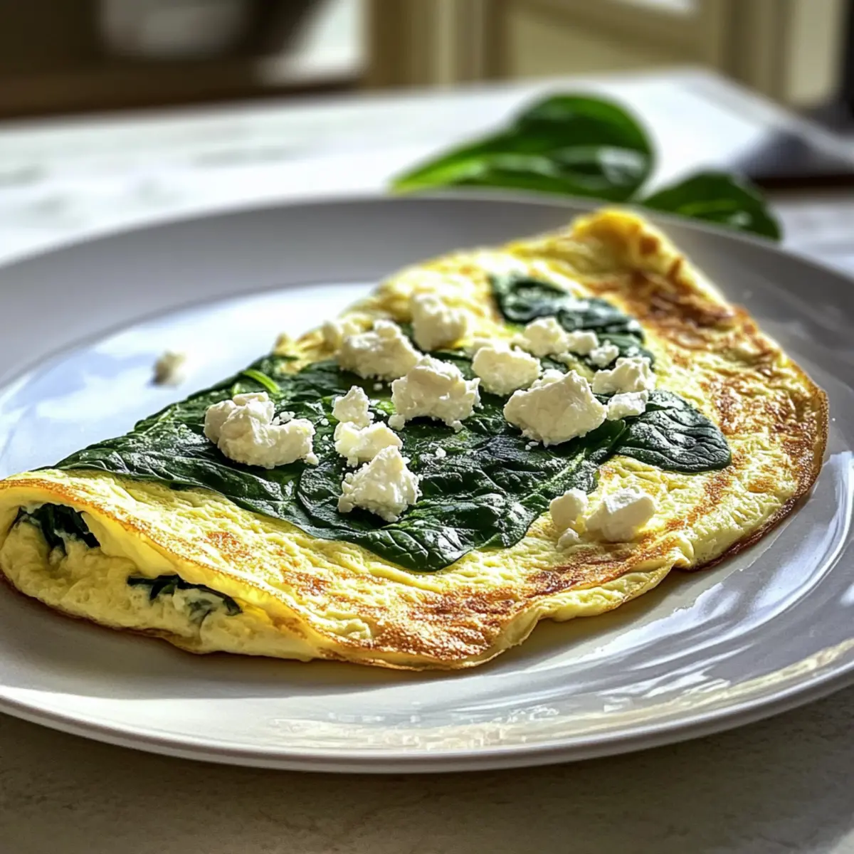 - Feta integrieren: Streue die zerbröckelten Feta-Stücke über eine Hälfte des Omeletts.
