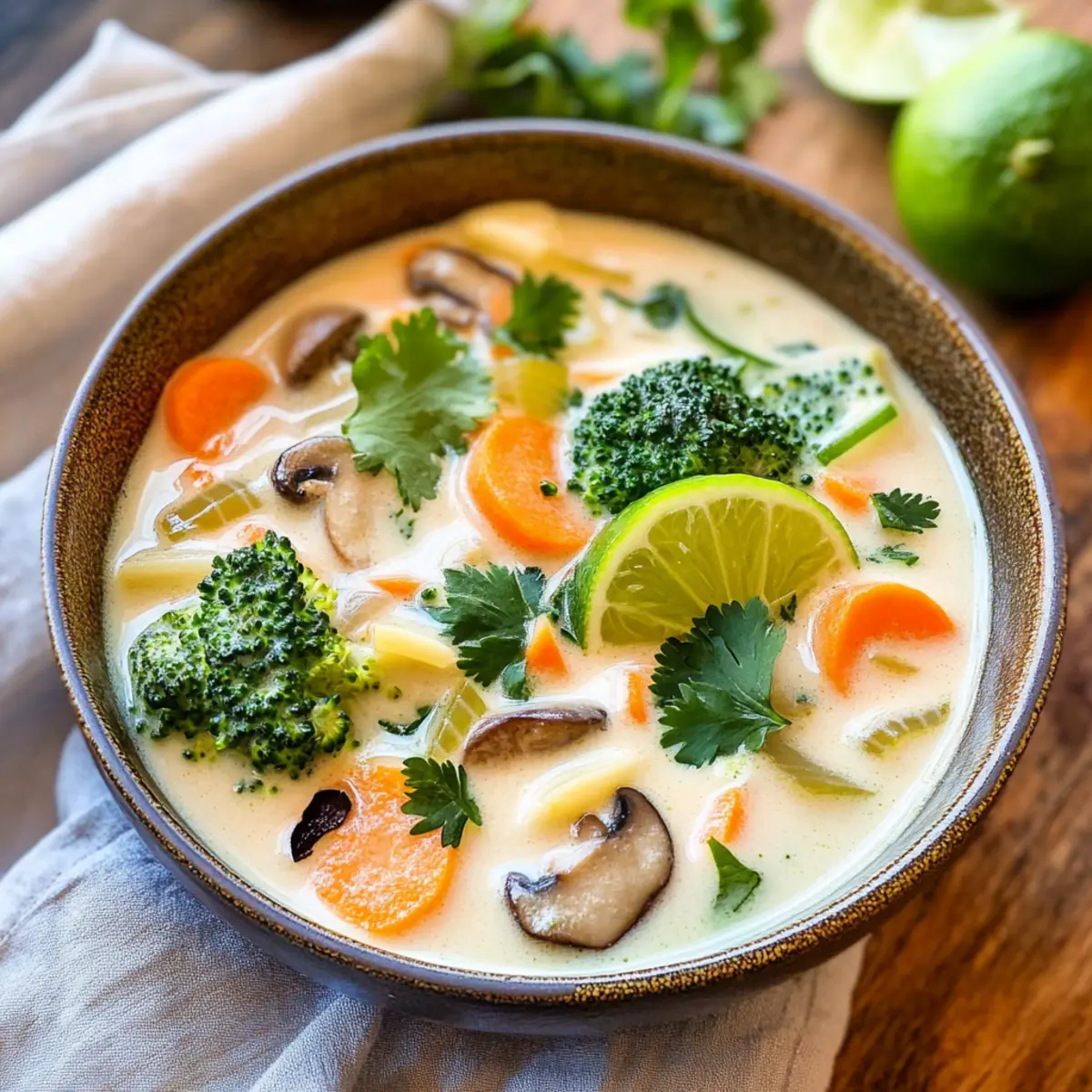Entdecke, wie einfach und köstlich diese Thai Kokosnuss Suppe mit Gemüse zubereitet werden kann!