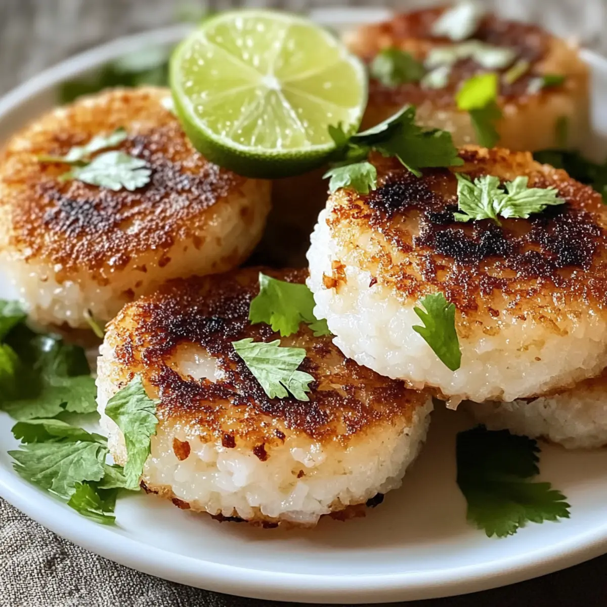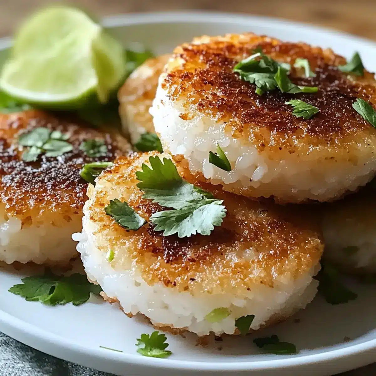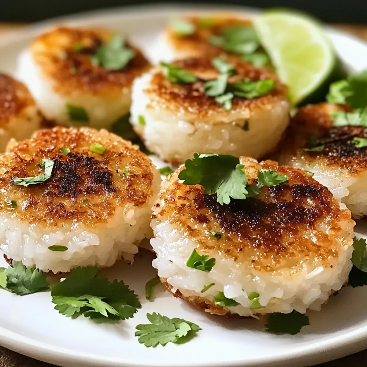 Garnier die frisch gebratenen Thai-Kokosnuss-Zitronengras-Reisküchlein mit frischem Koriander und optionaler Limettenschale. Serviere sie warm als köstliche Vorspeise oder gesunden Snack.