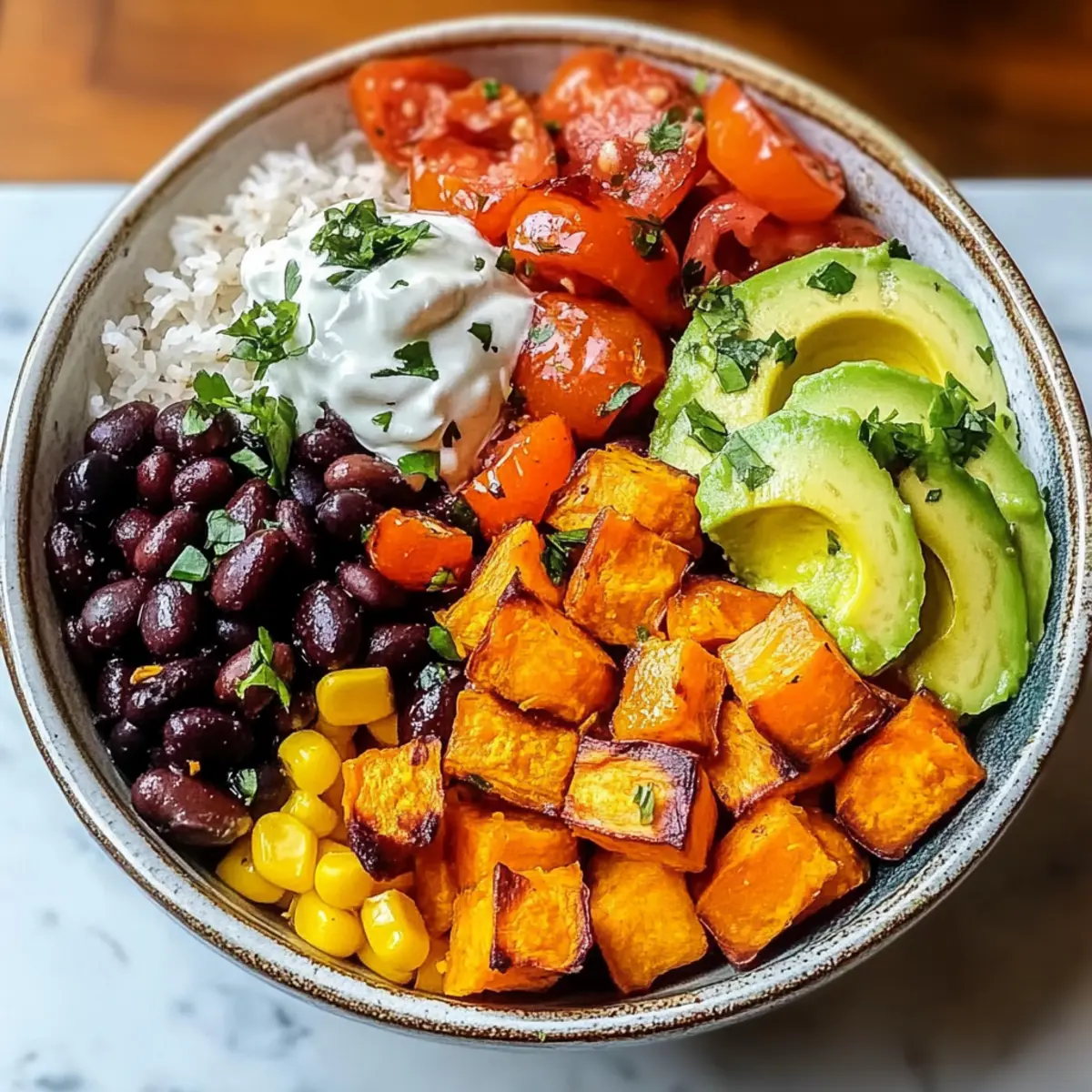 Vielfalt: Du kannst die Zutaten ganz nach deinem Geschmack anpassen und so stets neue Geschmackskombinationen ausprobieren. Gesund: Dieses Gericht ist nährstoffreich und hilft dir, eine gesunde Ernährung mühelos umzusetzen. Einfache Zubereitung: Die Schritte sind unkompliziert, sodass du schnell ein köstliches Abendessen zaubern kannst. Perfekt für Meal Prep: Bereite die einzelnen Komponenten vor und genieße sie im Laufe der Woche. Farbenfroh: Die bunten Zutaten machen jede Schüssel nicht nur lecker, sondern auch ein visuelles Highlight auf deinem Tisch. Mach dich bereit, deine Familie und Freunde mit dieser veganen Süßkartoffel-Burrito-Schüssel zu beeindrucken!