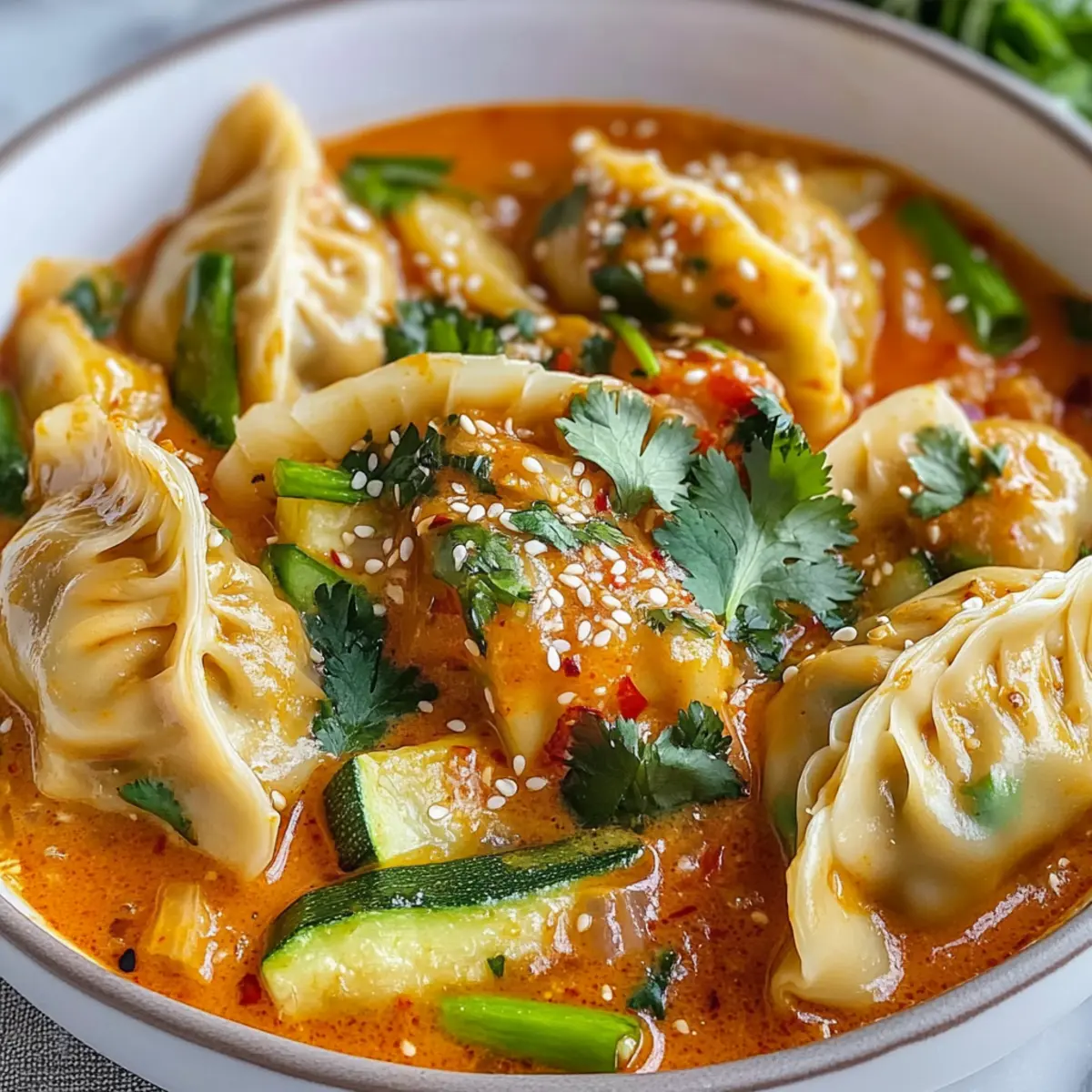 Als ich vor kurzem in einem asiatischen Markt stöberte, entdeckte ich etwas, das meine kulinarische Neugier weckte: gefrorene Teigtaschen in verschiedenen Geschmacksrichtungen. Daraus entstand mein neuestes Rezept für einen würzigen Teigtaschen-Auflauf mit cremiger roter Currysoße – ein Gericht, das nicht nur einfach zuzubereiten ist, sondern auch schnell auf dem Tisch steht. In nur 35 Minuten zauberst du ein köstliches Abendessen, das deine Familie und Freunde begeistern wird. Dank der Verwendung von frischen Gemüsekomponenten, kombiniert mit aromatischem Curry, ist dieser Auflauf eine perfekte Fusion aus Komfort und Geschmack. Bist du bereit, deine Küche in ein asiatisches Erlebnis zu verwandeln?
